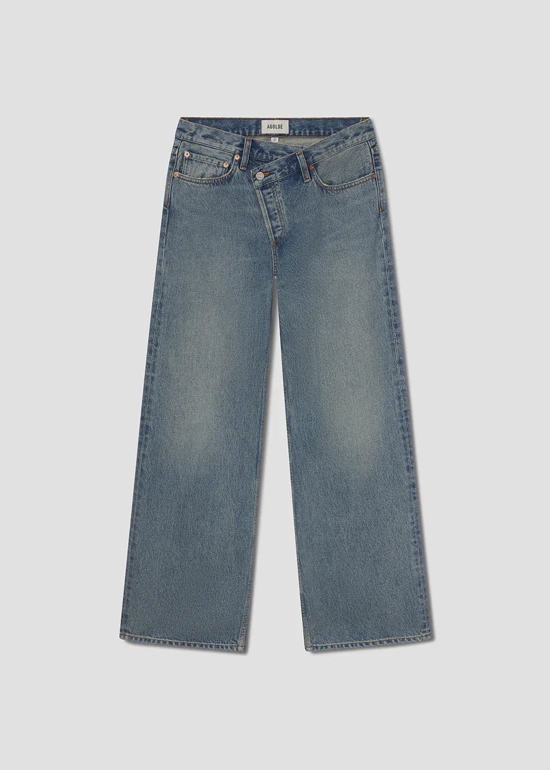 Le jean Arc Criss Cross en coloris Conclusion de AGOLDE réinvente une silhouette emblématique avec une touche de modernité. Confectionné en coton rigide régénéré et recyclé, ce denim indigo moyen présente une ceinture croisée, une coupe ample au niveau des hanches et une jambe galbée pour une silhouette subtilement sculptée. Un entrejambe de 32" allonge la silhouette, alliant structure et confort.