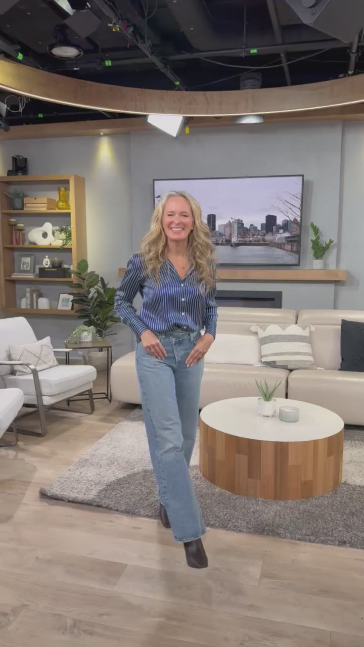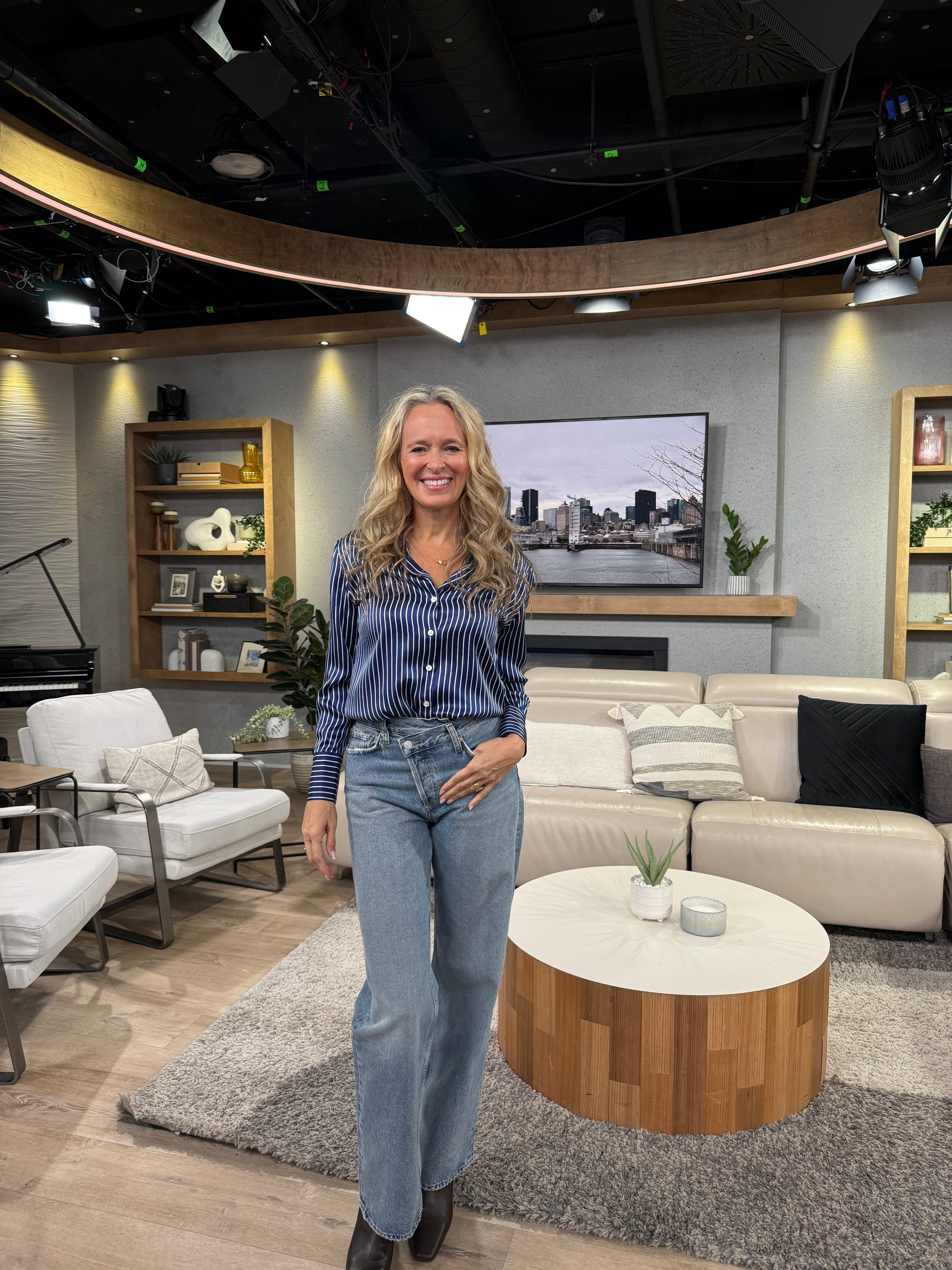 - Le mannequin mesure 5'10" et porte une taille 27.
