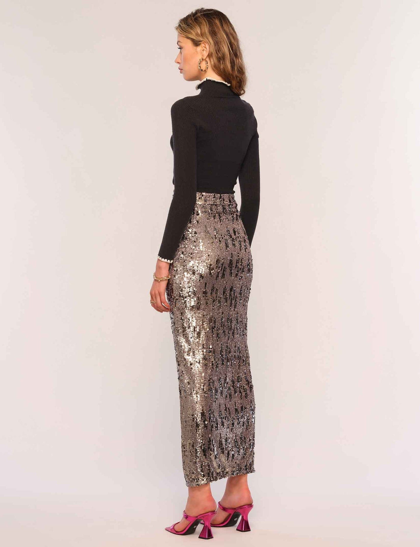La jupe Aviella de Heartloom est confectionnée à partir d'un sequin chevron. Elle présente des fronces au niveau du haut de la taille et une fente latérale. Cette jupe est parfaite pour une fête ou simplement pour ajouter un peu d'éclat à votre journée.