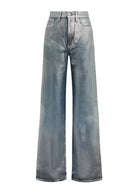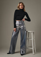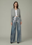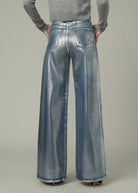 Le Mia au fini métallique de Joe's Jeans présente une coupe ajustée au niveau de la taille et des hanches avec une taille haute et une jambe large sur toute la longueur. Sa couleur Party Indigo est un denim moyennement léger avec une finition luxueuse en feuille d'argent métallique. Ce modèle possède une touche de stretch ajoutée pour maintenir confortablement la structure tout au long de la journée.
