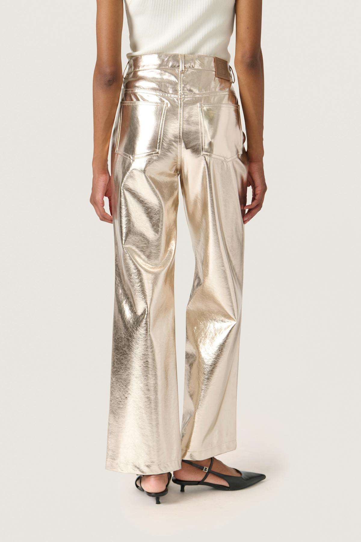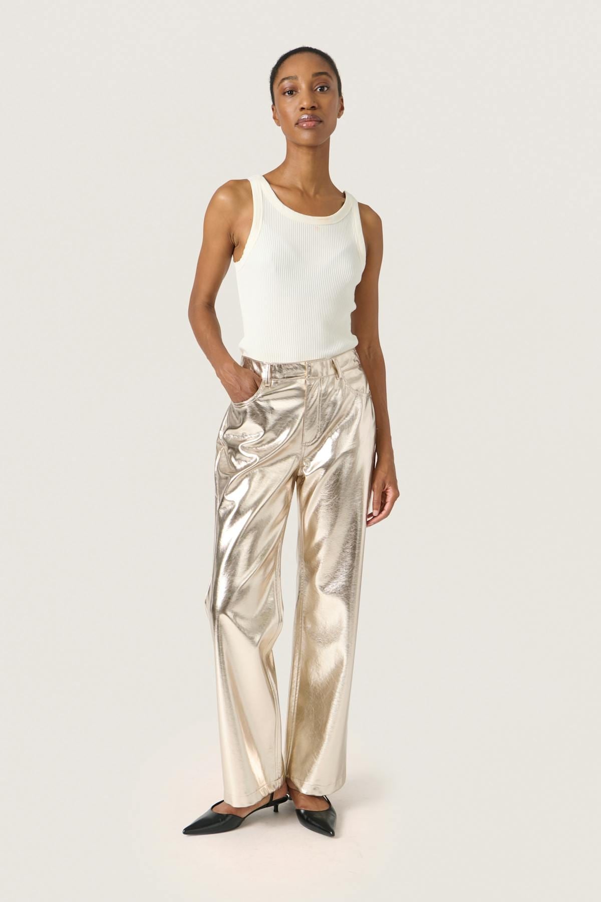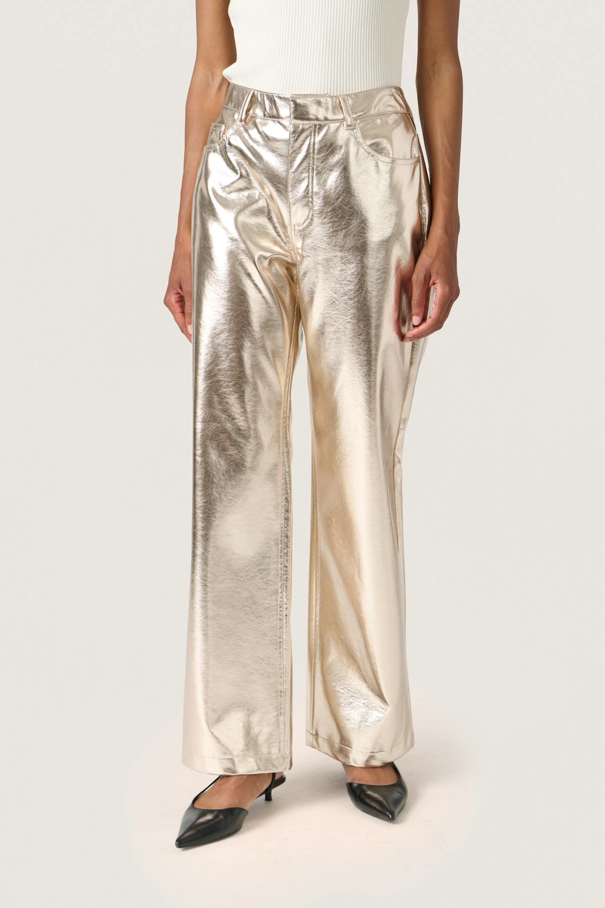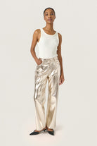 Ce pantalon brillant Danila de Soaked in Luxury présente une finition métallisée, une taille haute et des jambes larges. Ce pantalon ajoutera une touche audacieuse et moderne à toute garde-robe festive.