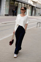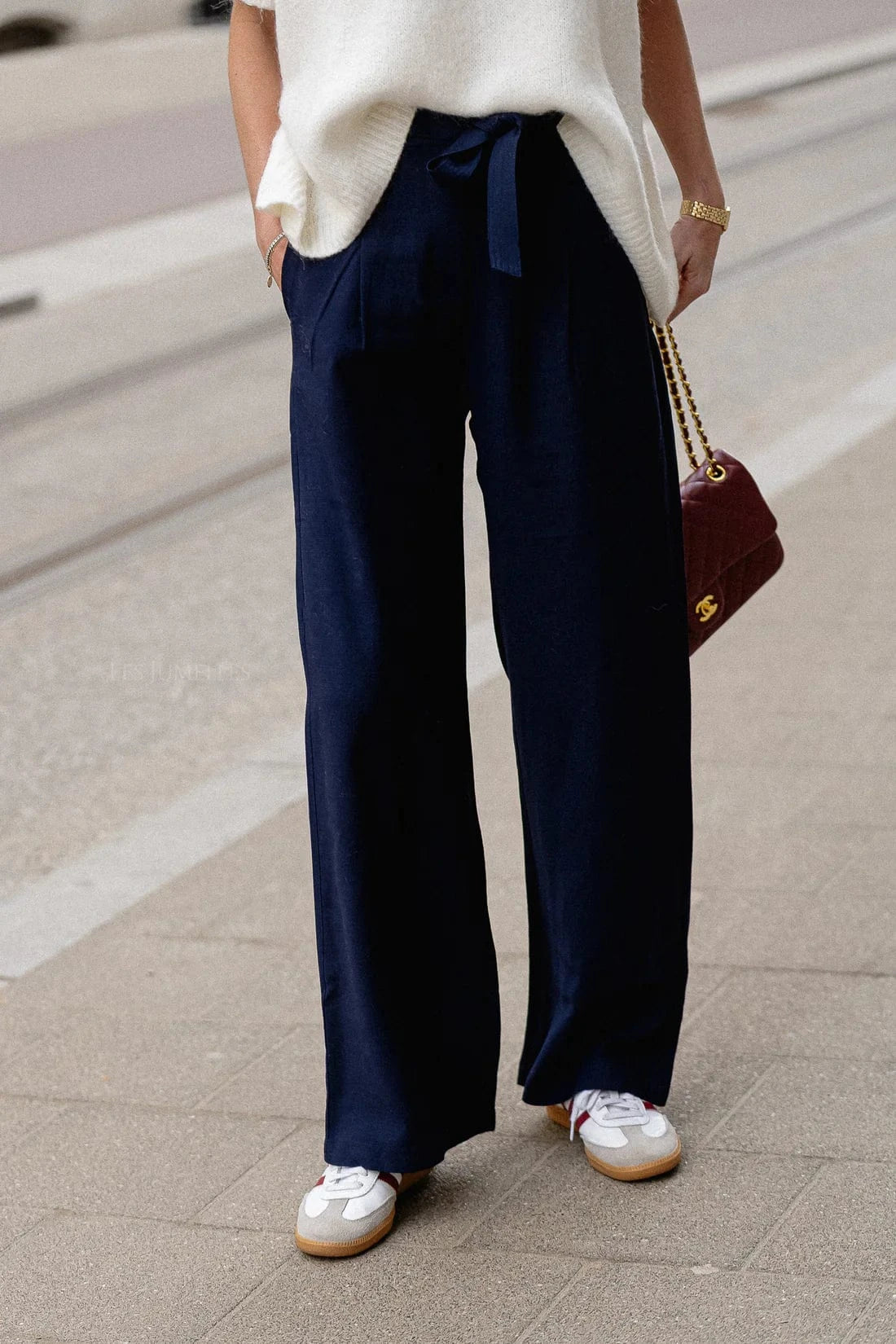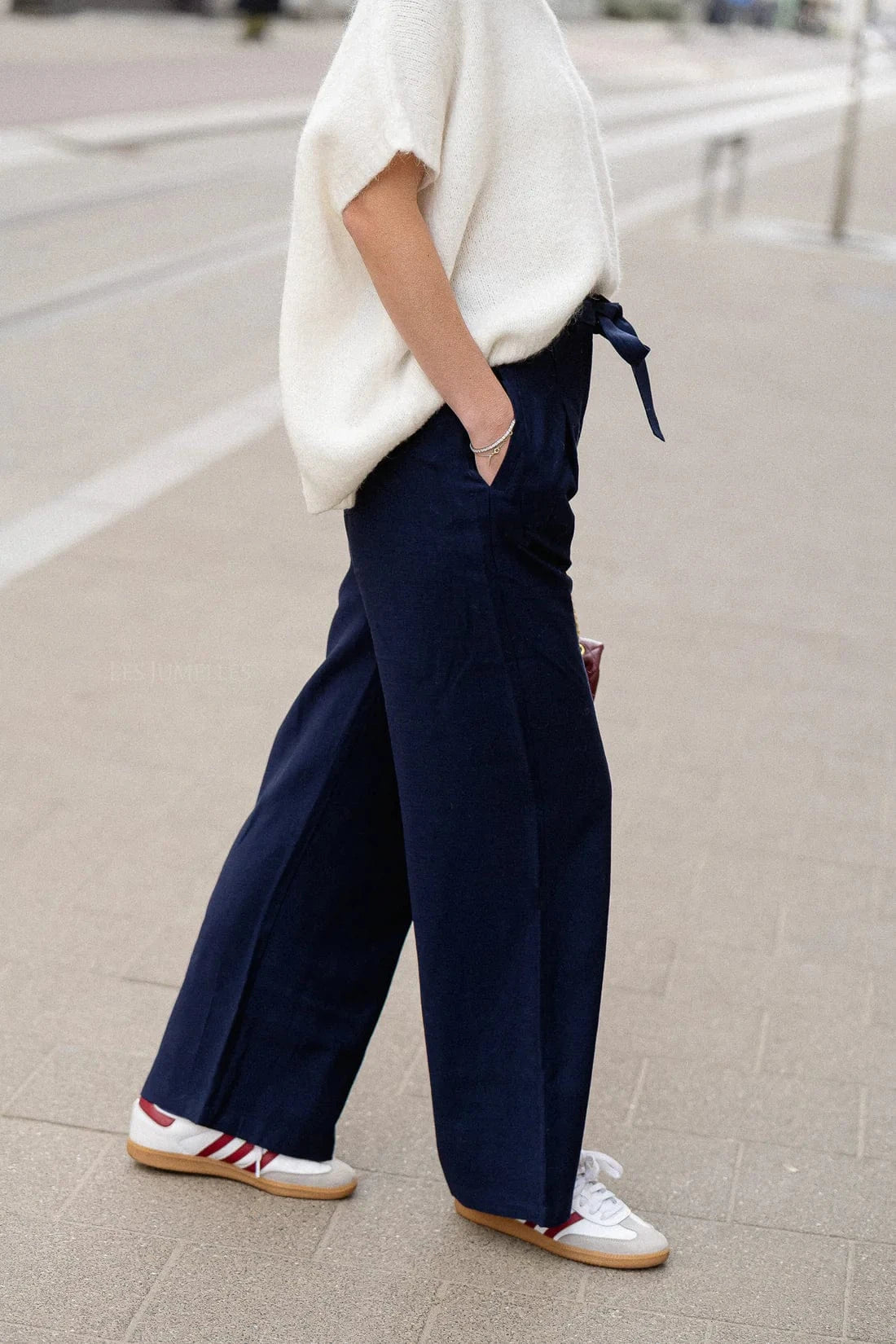 - Jambes larges pleine longueur.