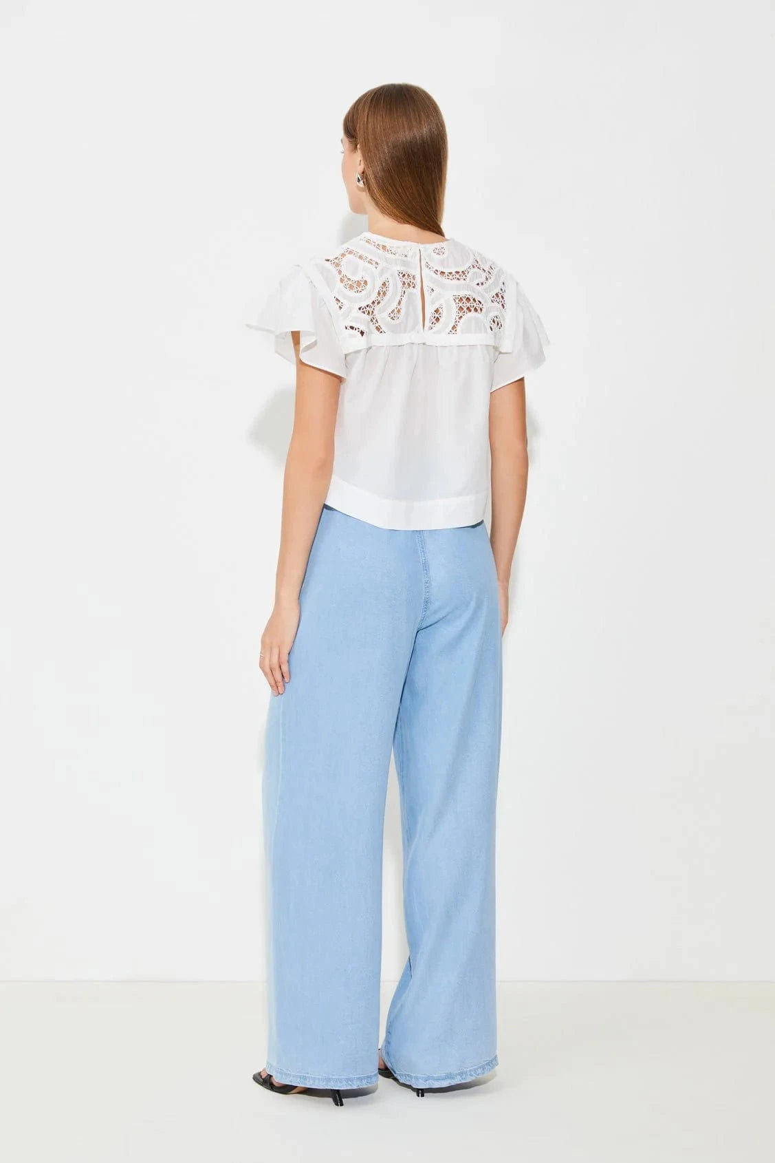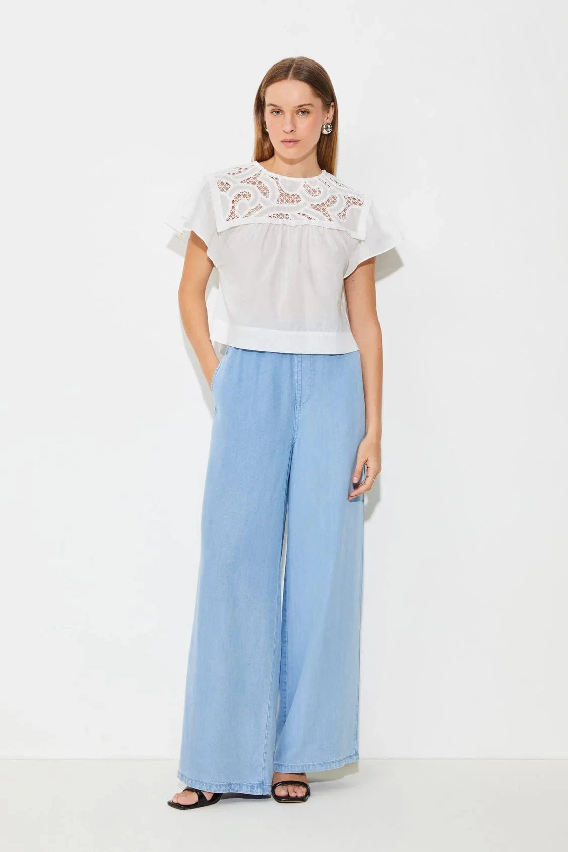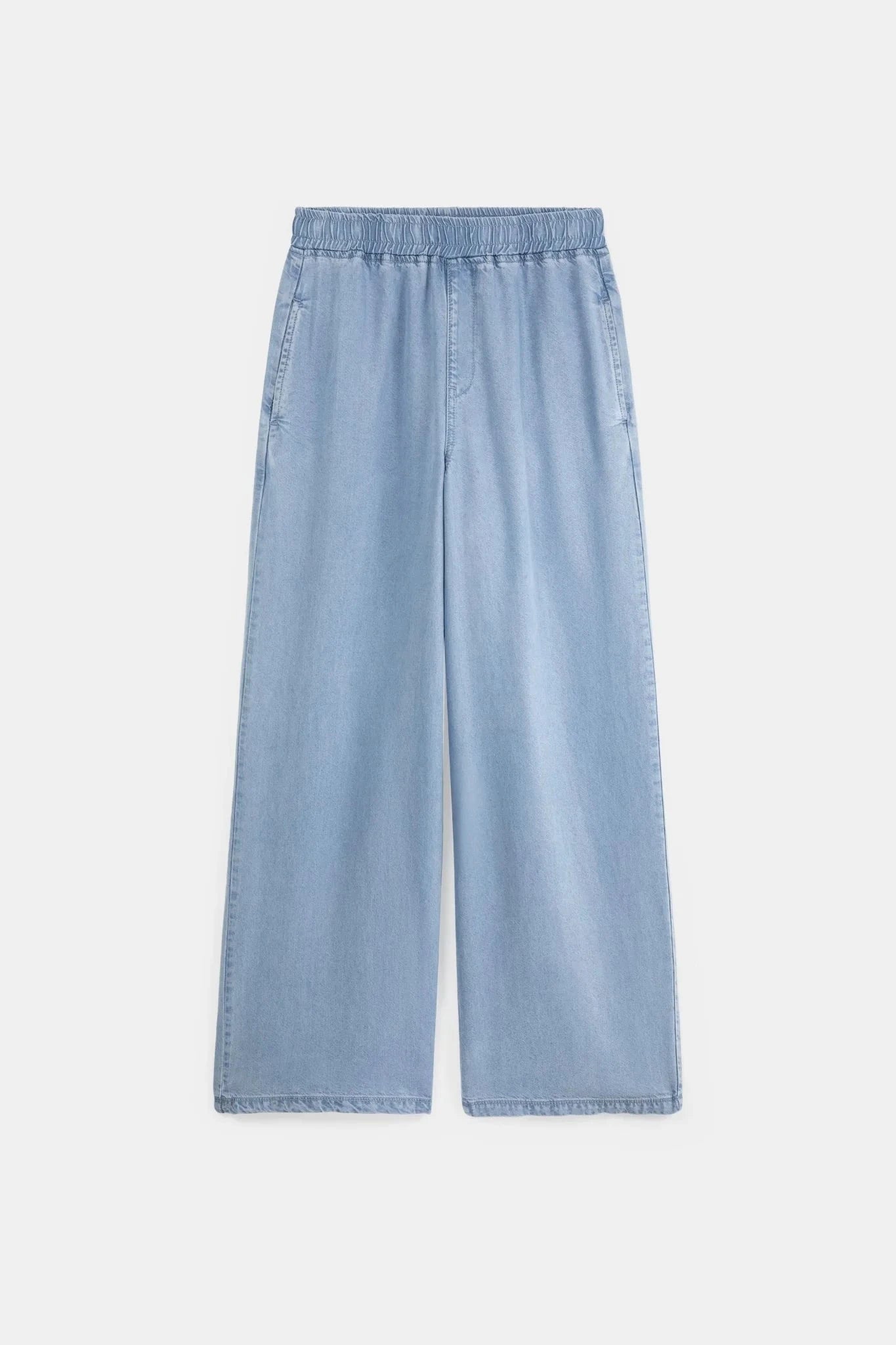 Le pantalon Ryan de Suncoo est le mélange parfait de confort et de style. Ce pantalon doux présente une coupe large et moderne dans une couleur denim bleu clair. Avec un style facile à enfiler et une taille élastique, il est à la fois confortable et pratique.