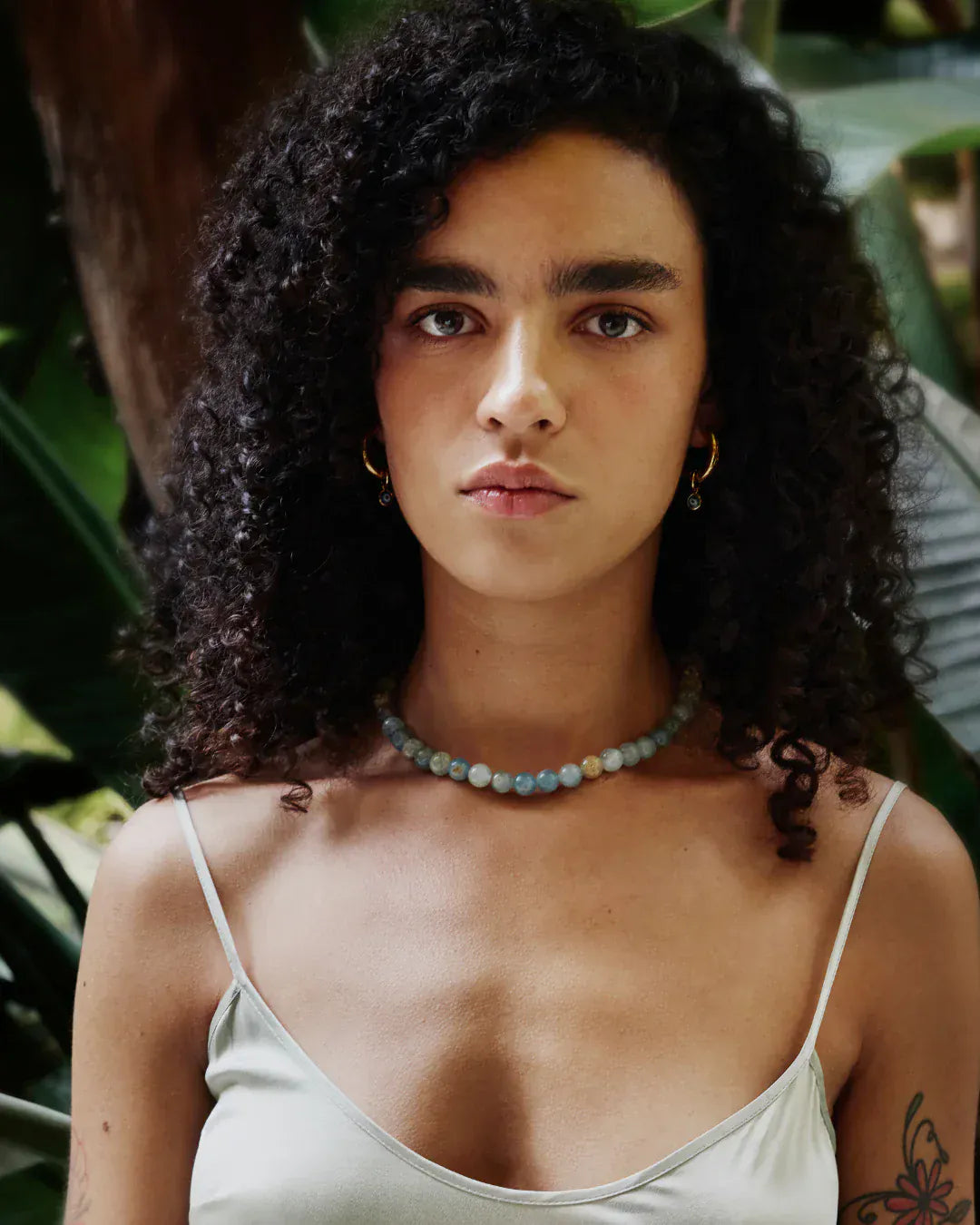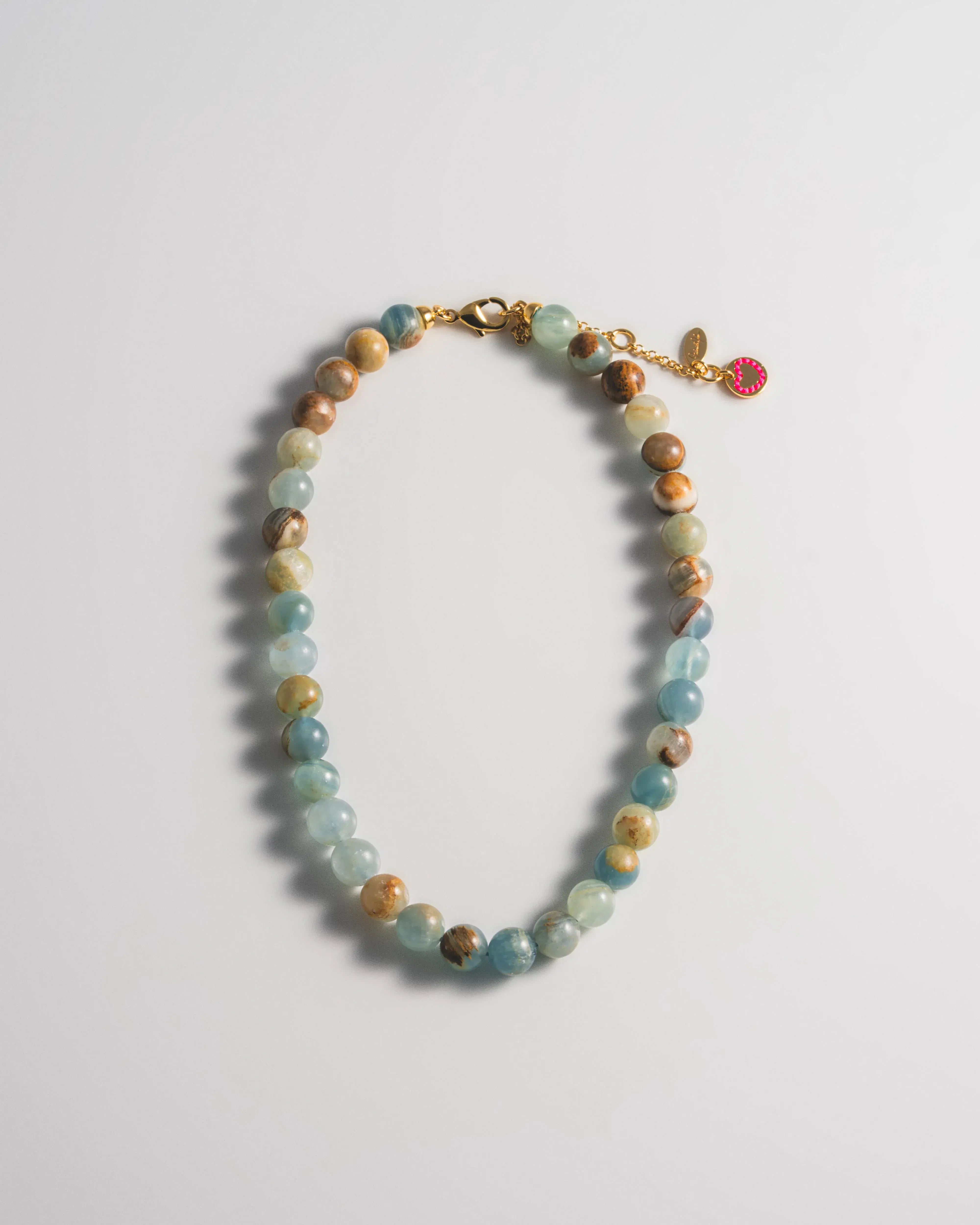 Découvrez le collier Aura de Mademoiselle Jules. Ce modèle présente des perles en aigue-marine. Portez-le seul ou en superposition avec le collier Eye of the Sun ou le collier à breloques Bahia.