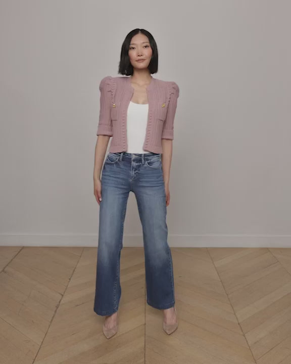 Texture et forme définissent le cardigan Delilah de L'AGENCE. De retour en mauve clair, ce modèle est confectionné en maille structurée et est doté de manches bouffantes. Il peut être porté en haut ou en deuxième couche, toute l'année.