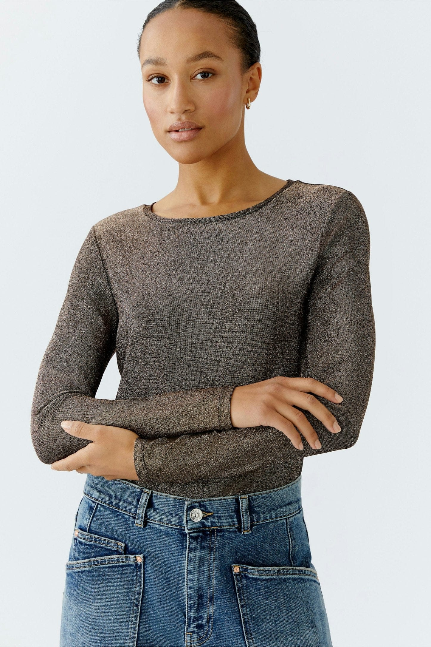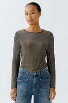 Ce t-shirt à manches longues de OUI FASHION est confectionné en jersey doux élastique avec une forte proportion de fils brillants. Sous-couche idéale et très brillante, son intérieur doux lui offre un confort indéniable. Portez ce chandail autant décontracté qu'habillé.