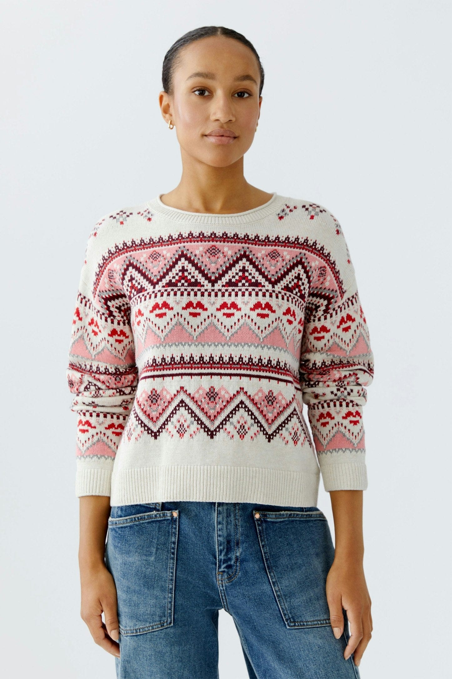 Ce pull à la coupe moderne de OUI FASHION présente un motif norvégien classique. Confectionné en pur coton en jacquard norvégien, ce style est aussi confortable qu'original. Il apportera de la couleur à vos tenues automnales.