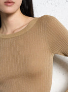 Le haut Praveg de SUNCOO est un pull fin côtelé lurex à manches longues, réalisé à partir de polyamide recyclé. Parfait pour ajouter un peu de lumière à vos tenues, sa coupe et son confort en font une base de choix sous un veston ou un cardigan. Finissez votre tenue avec votre jean préféré.