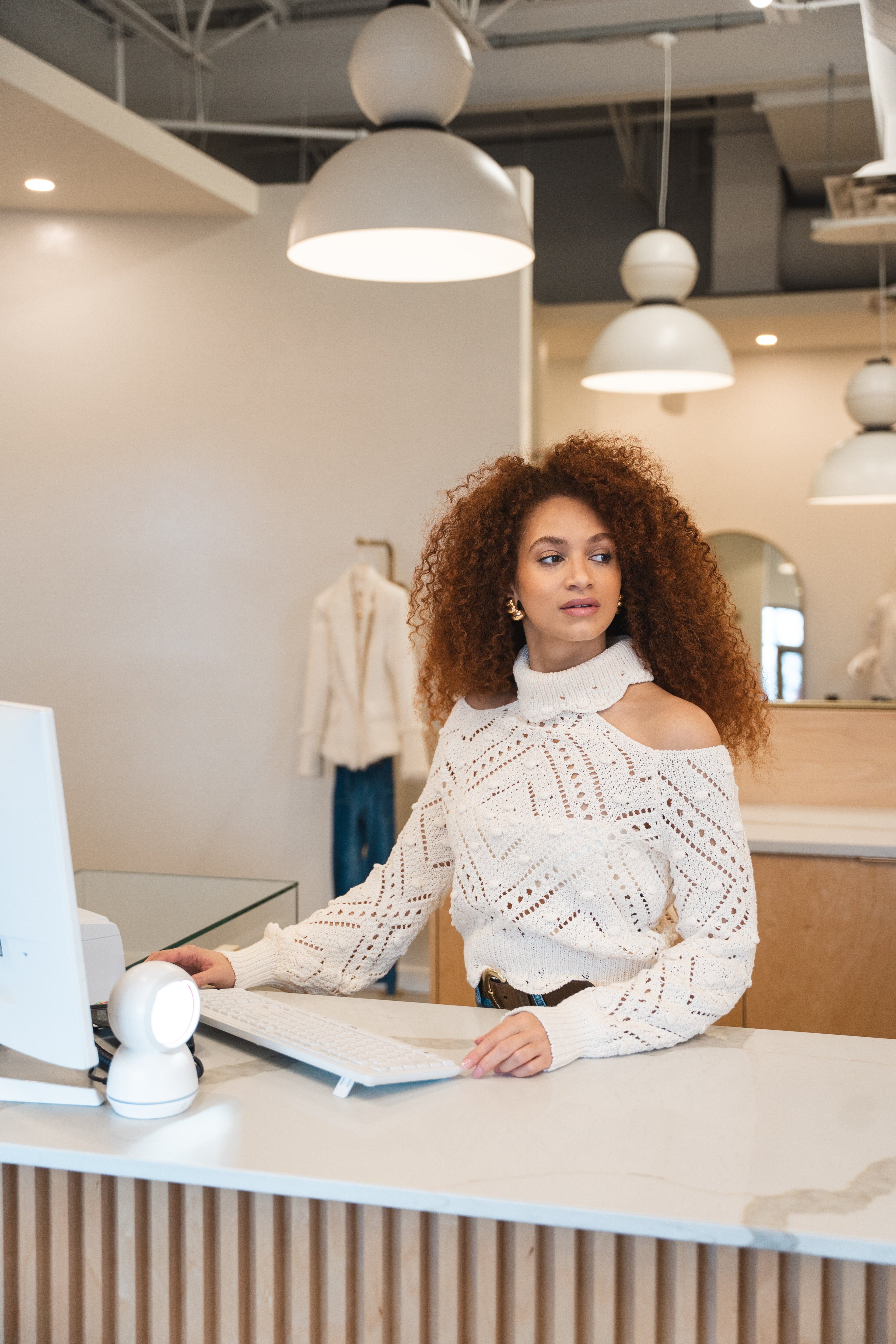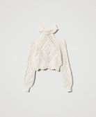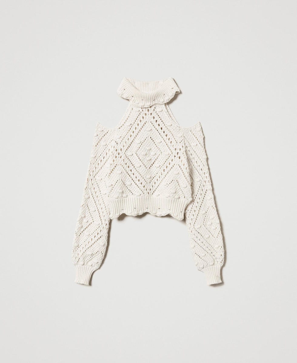 Ce pull court en coton mélangé ajouré de TWINSET possède un motif en losanges. Il présente un col roulé, des découpes aux épaules, des manches longues amples, des bords côtelés et un ourlet festonné. Agencez-le avec votre paire de jeans taille haute préférée.