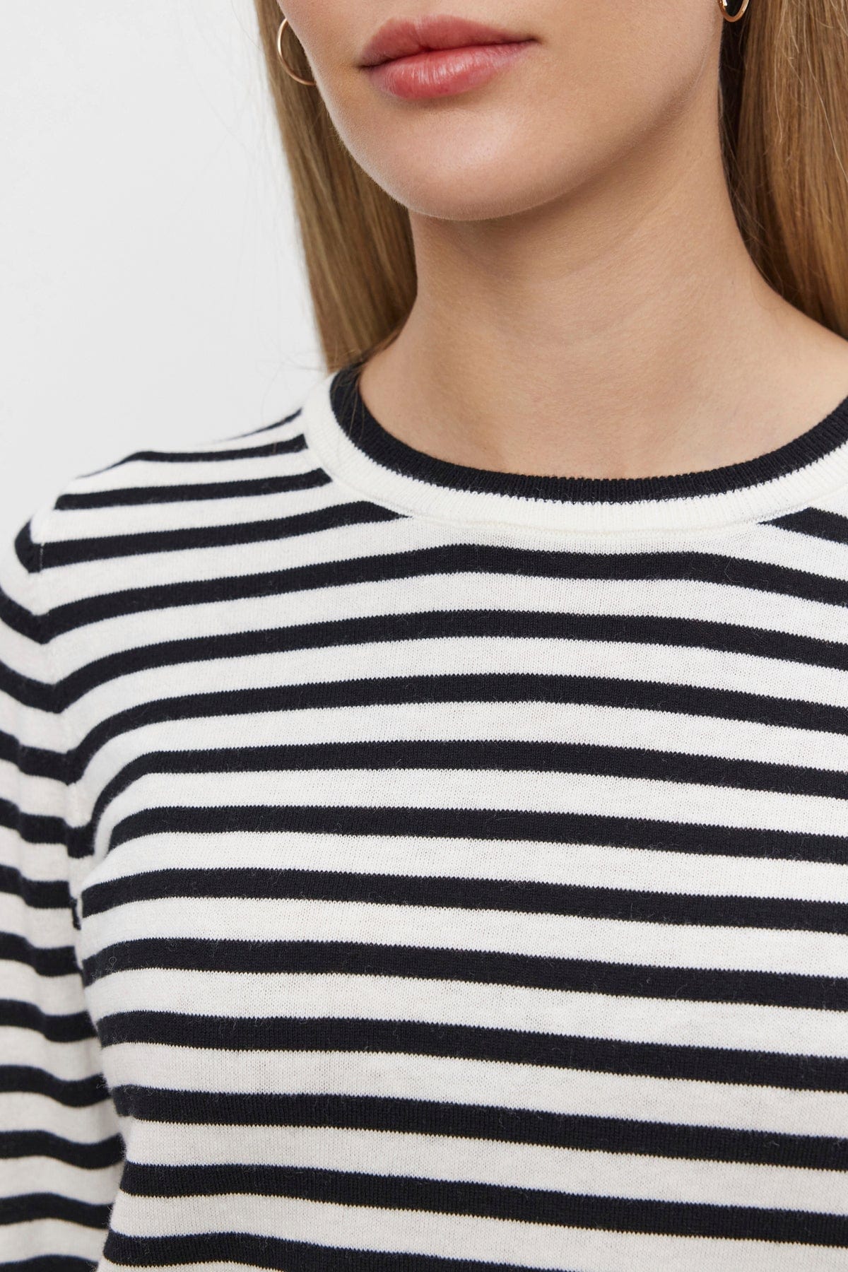 Faites l'expérience d'une douceur inégalée avec le pull Roxy de Velvet. Confectionné en coton cachemire luxueux, ce pull léger présente une encolure ras du cou avec des détails côtelés au niveau de l'encolure, des poignets, de l'ourlet et des empiècements latéraux pour un look raffiné.