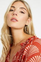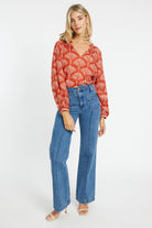 Désormais disponible dans l'imprimé Ginko Breeze Rust présentant des motifs de feuilles en éventail dans un doux ivoire sur une base rouille intense, le haut Miki de Caballero est idéal pour la transition été-automne, offrant le parfait équilibre entre couvrance et confort. Ce haut à manches longues de coupe décontractée présente un décolleté en V flatteur orné d'un délicat volant, apportant une subtile touche de féminité. Porté avec un jean ou pour une tenue plus habillée en soirée, le haut Miki est polyvalent et élégant, sans effort.