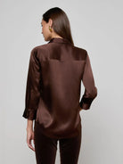 Découvrez l'emblématique chemise en soie Dani de L'AGENCE, un indispensable de toute garde-robe. De retour dans un riche brun café, cette chemise signature à boutons présente des manches 3/4 faciles à glisser sous un veston. Agencez-la avec votre jean préféré.