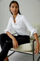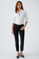 Le chemisier classique Anuya de OUI FASHION présente une finition légèrement satinée avec des manches aux poignets légèrement plus longs à retrousser. Dans un mélange de coton élastique, ce basique est tout aussi polyvalent que confortable. Portez-le seul ou sous un cardigan.