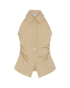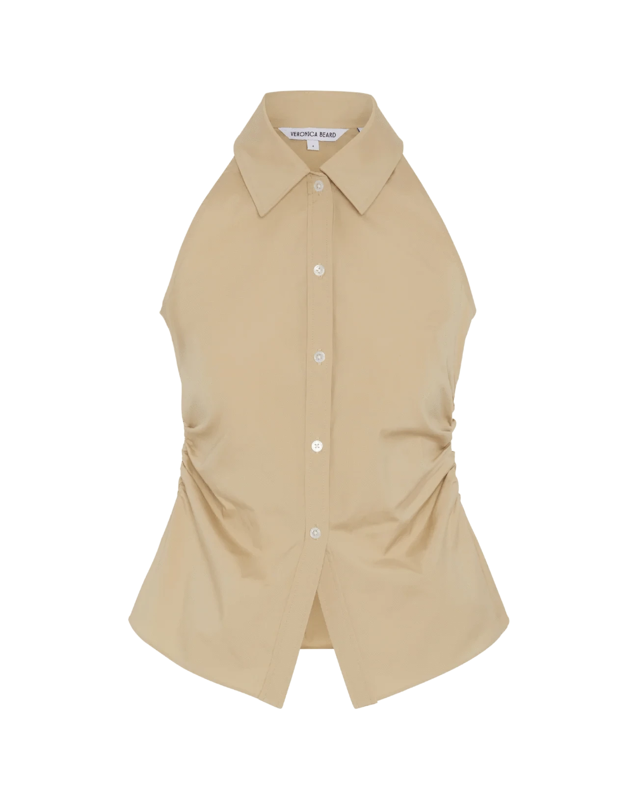 Aussi essentiel qu'élégant, le haut Regina de Veronica Beard deviendra votre nouvelle pièce incontournable à porter partout. Ici, la chemise boutonnée kaki classique est revisité dans une silhouette sans manches où y est ajouté un ourlet coupé en biais exagéré. Portez-le seule ou en superposition avec votre jean préféré.