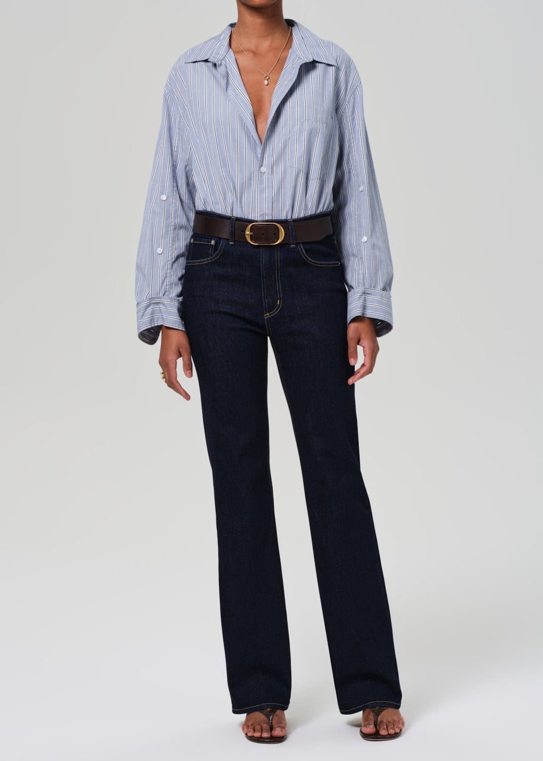 Le jean Vidia de Citizens of Humanity est une coupe boot ultra flatteuse à l'esprit vintage. Se posant haut au niveau des hanches, cette silhouette amincissante a une jambe gracieusement formée pour un effet allongé. Ce denim d'archive emblématique possède la quantité parfaite d'extensibilité pour un confort toute la journée.
