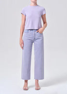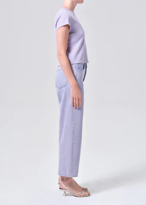 Le jean Ren de AGOLDE présente une taille haute flatteuse, une coupe décontractée aux hanches, puis une jambe large allongée et fluide. Son délavage lavande moyen apporte une touche de fraîcheur et de subtile profondeur à ce classique structuré et épuré. Confectionné dans un mélange de coton rigide, régénéré et recyclé non extensible, il offre un toucher doux pour un confort optimal tout au long de la journée, tout en conservant sa forme sculptée. Portez-le avec son t-shirt Adine assorti pour une tenue printanière par excellence.