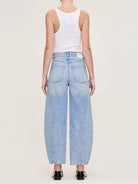 Le Miro de DL1961 est un jean taille haute et volumineux à jambe cylindrique, ajusté à la hanche et arrivant à la cheville avec une jambe fuselée. Il présente une tige argentée, des rivets en cuivre, des coutures multicolores, un ourlet épuré et un patch écru au dos. Sa couleur Tinted Light est un délavage indigo clair avec une touche vintage. Faisant parti de la gamme HIGHLUXE™, ce jean Miro combine l'aspect authentique du denim rigide vintage avec des fibres régénératives et du coton certifié pour un toucher ultra doux incomparable.