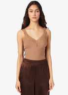 La camisole Lani de CAMI NYC présente un décolleté en V classique, compatible avec le port d'un soutien-gorge. Pièce incontournable et raffinée, elle est confectionnée dans une maille côtelée de qualité supérieure, douce, respirante et légèrement texturée. D'une coupe épurée et moderne, elle offre un équilibre parfait entre simplicité minimaliste et élégance au quotidien. Portez-la aussi bien seul que sous une veste, un blazer ou un pull.