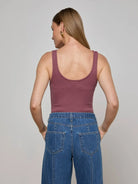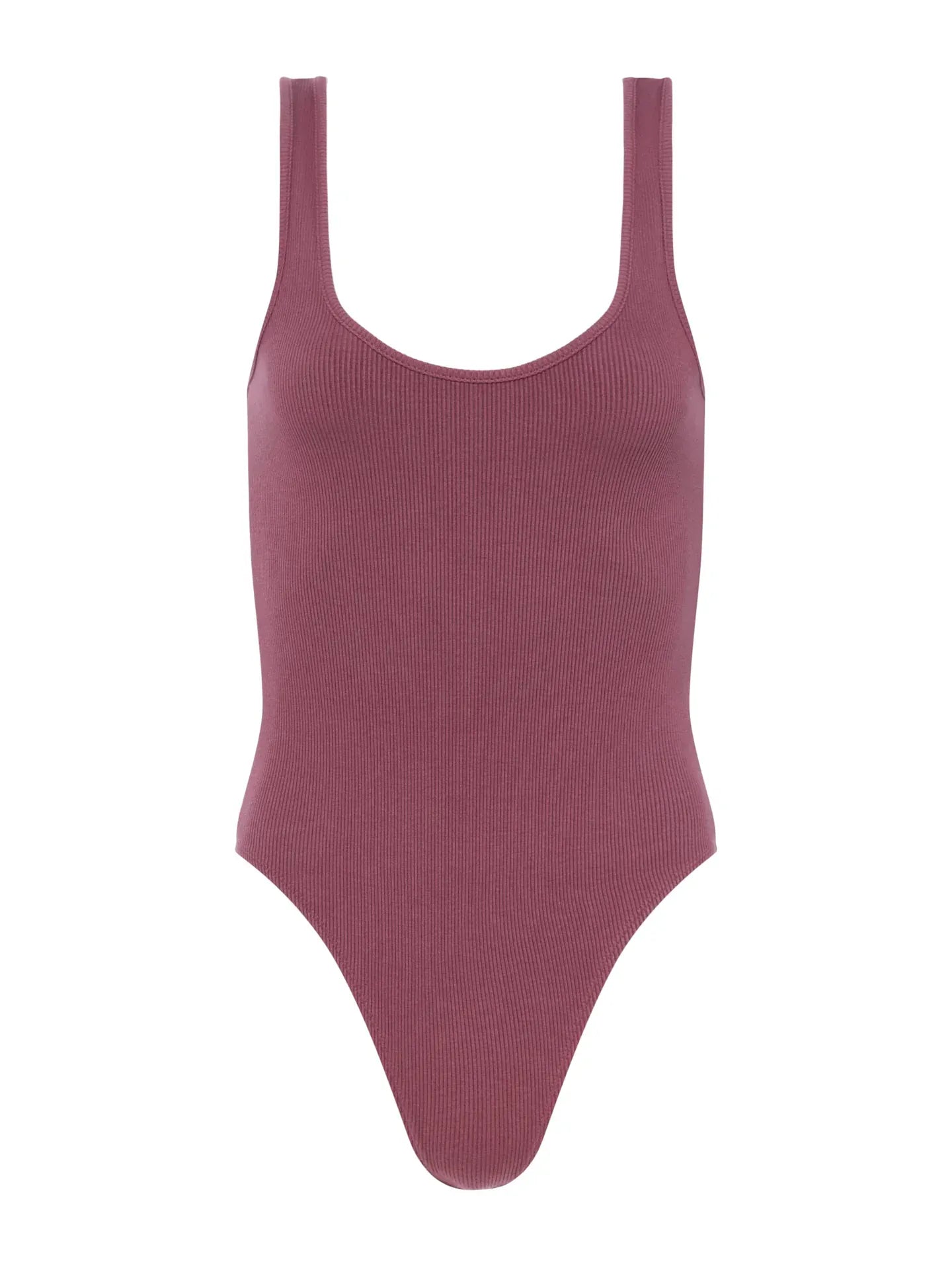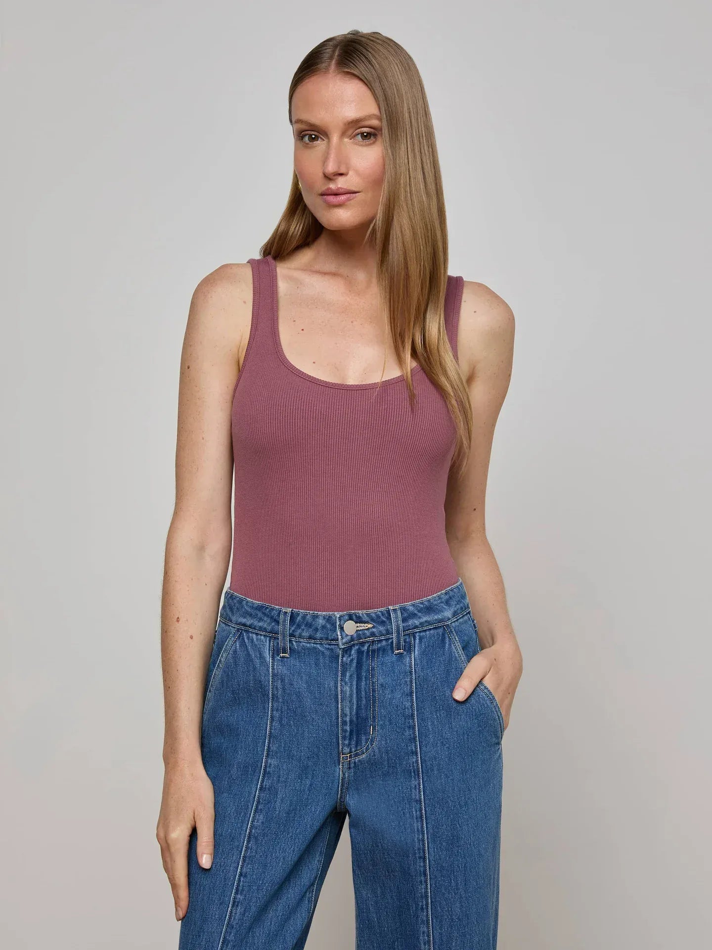 Avec son décolleté plongeant, sa coupe flatteuse et sa maille côtelée extensible, le bodysuit Nica de L'AGENCE est LE basique par excellence. De retour dans un joli mauve profond, il est à porter seul ou sous un veston.