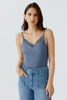 Cette camisole à dentelle de OUI FASHION présente un décolleté en V classique et de minces bretelles ajustables. Pièce incontournable et raffinée, elle est confectionnée dans une maille côtelée de qualité supérieure, douce, respirante et légèrement texturée. D'une coupe épurée et moderne, elle offre un équilibre parfait entre simplicité minimaliste et élégance au quotidien. Portez-la aussi bien seul que sous une veste, un blazer ou un pull.