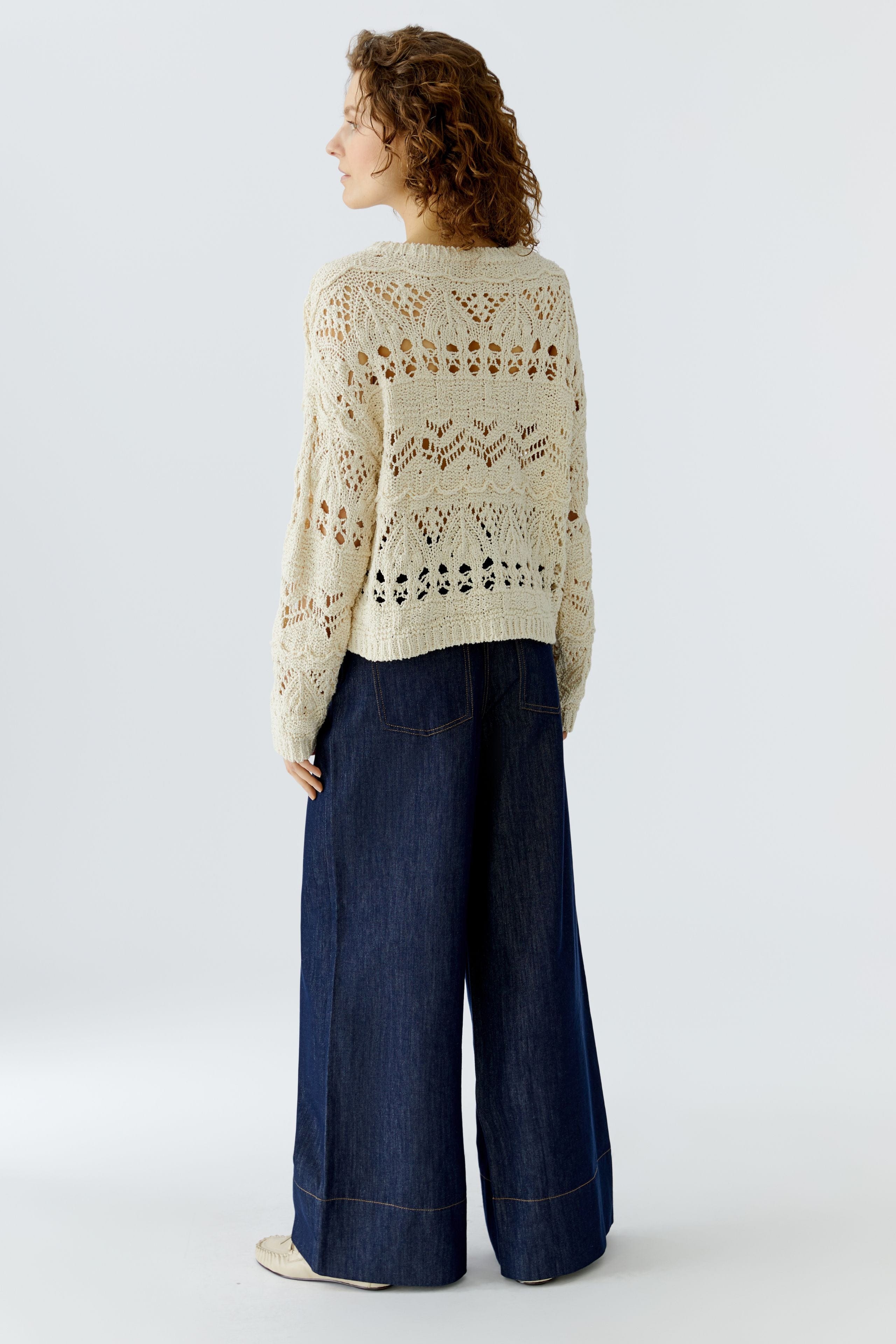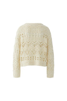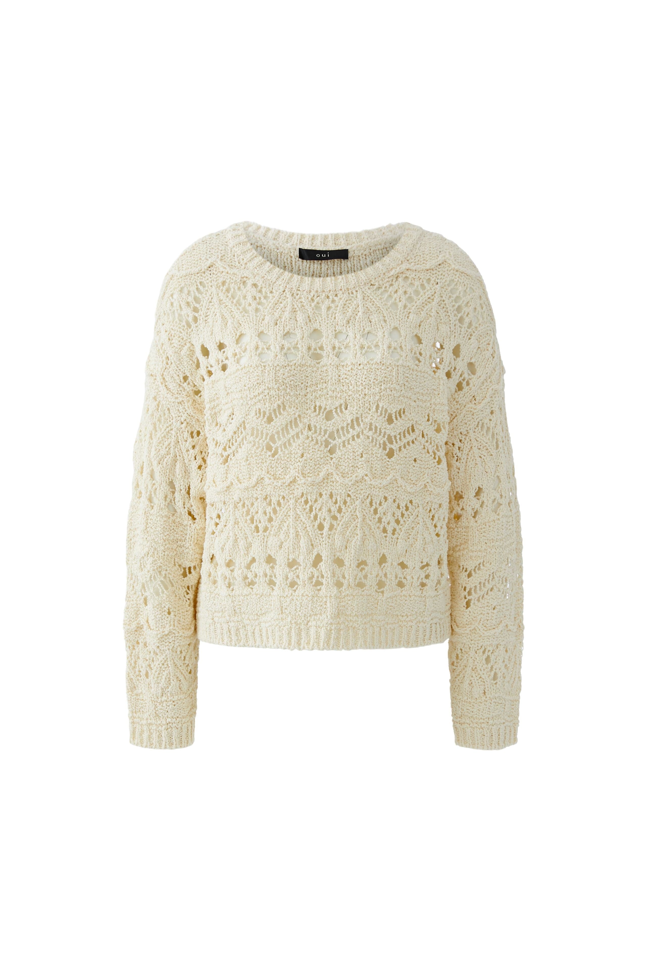 Ce pull en maille ajourée de OUI FASHION présente une longueur courte, des épaules tombantes et des manches longues fluides. Confectionné dans un mélange de coton bouclé légèrement transparent, ce tricot à la coupe décontractée sera parfait pour la transition printemps-été.