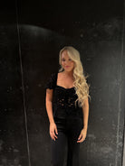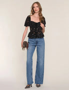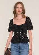 Le haut Sheila de HEARTLOOM est un bustier aux superbes détails en dentelle de velours. Avec sa coupe légèrement péplum et son élastique au dos pour un ajustement parfait, il sera un magnifique haut de soirée !