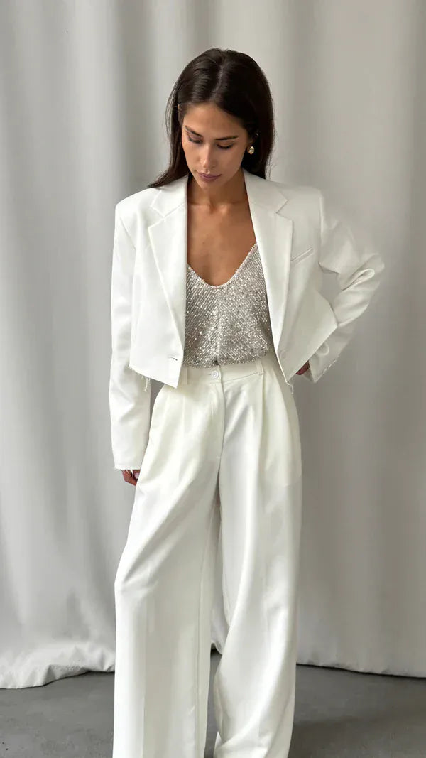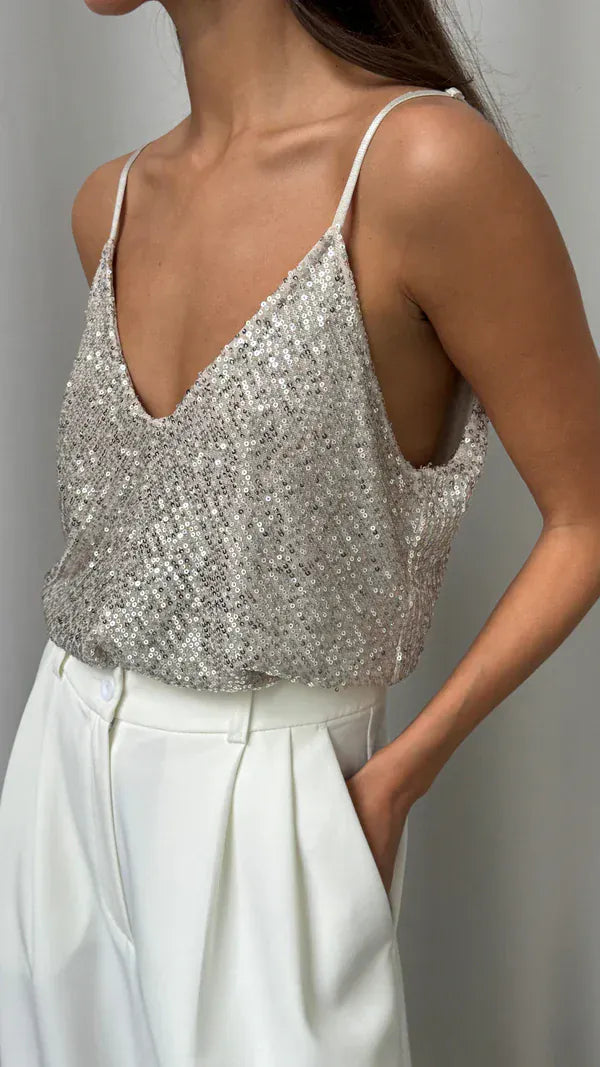 Le débardeur à sequins Sienna de CHARLI LONDON est la pièce idéale pour vos évènements de fin d'année. Son décolleté en V, assorti au dos, s'adapte à toutes les morphologies. Doublée de jersey doux pour un confort optimal, cette camisole est à porter avec une veste ou un pantalon tailleur fluide pour un look chic et décontracté.