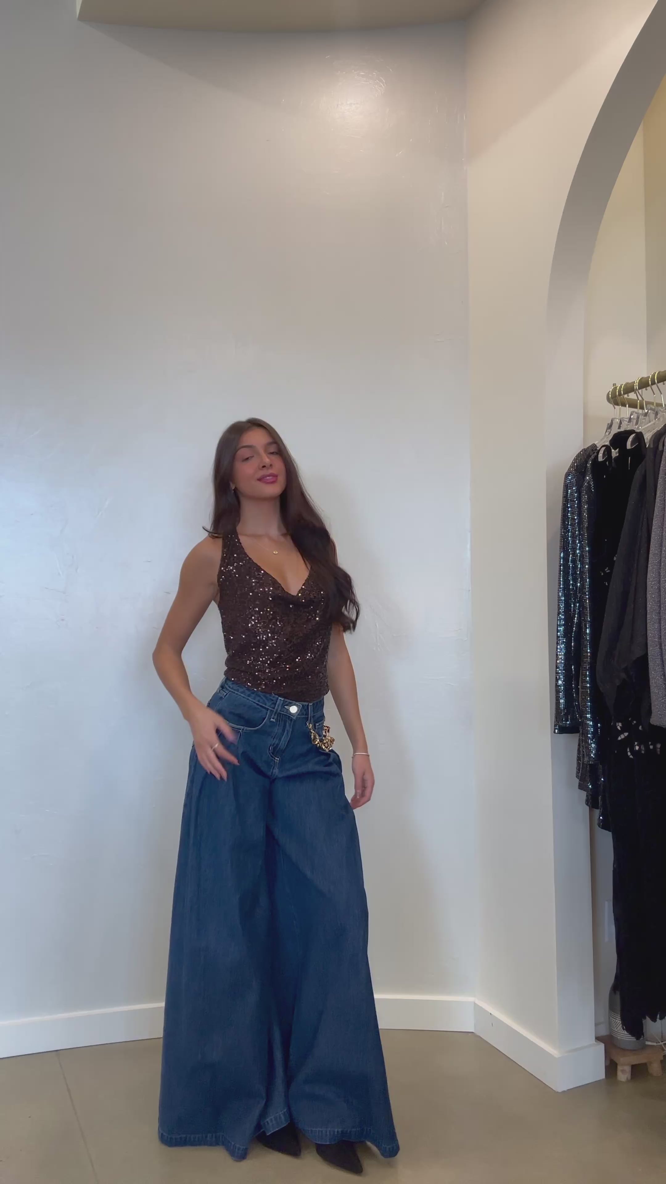 Pièce phare de HEARTLOOM, le top Maple est un simple haut à col châle orné de sequins. Sa coupe cintrée et flatteuse est accentuée par son dos ouvert. Portez ce haut avec un jean jambe large pour une tenue chic et passe-partout.