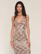 La robe Acadia est un incontournable de HEARTLOOM. Confectionnée en sequins à motifs, elle présente un col bénitier, une coupe ajustée, puis une longueur arrivant juste à la cheville. C'est la robe idéale pour les fêtes de fin d'année.
