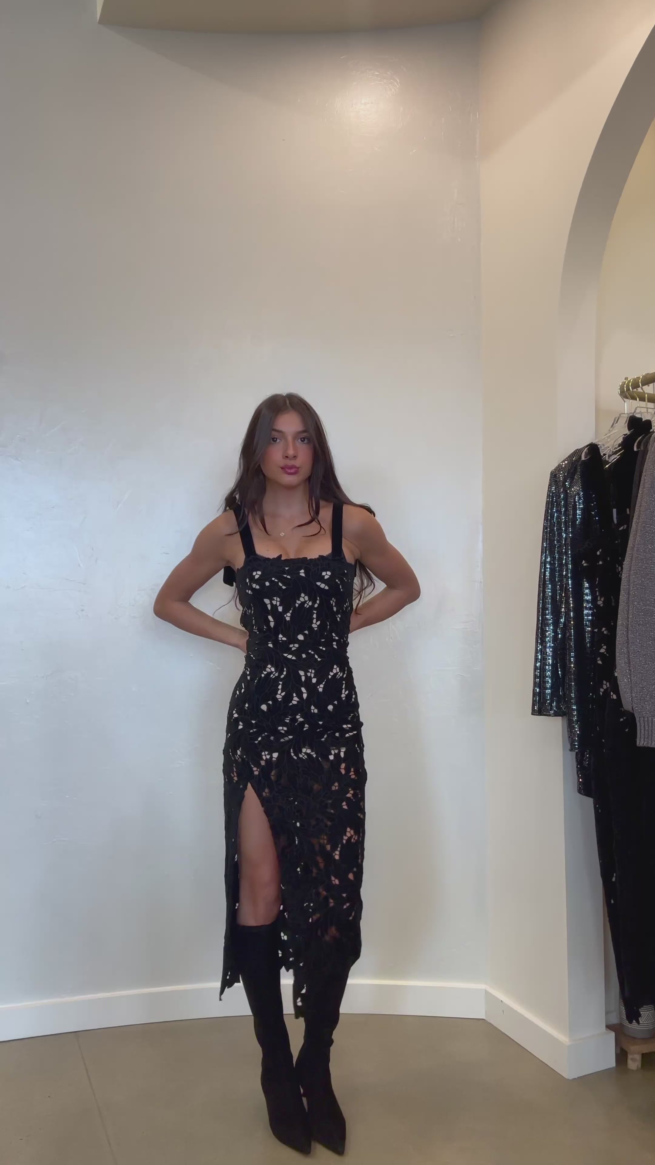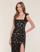 La robe Esperanza de HEARTLOOM est confectionnée en dentelle de velours. Elle présente une coupe ajustée, des bretelles à nouer en velours, puis une longueur arrivant au-dessus de la cheville. Élégante et féminine, elle sera parfaite pour vos occasions habillées.