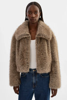 Le glamour vintage revisité. Le manteau Nova de LAMARQUE est confectionné en fausse fourrure douce et coupé pour épouser la silhouette avec aisance. Il présente une coupe courte alliant texture luxueuse et modernité. Doté d'une fermeture zippée sur le devant et d'un col exagéré, il est la pièce affirmée qui sublime aussi bien un jean qu’une tenue de soirée.
