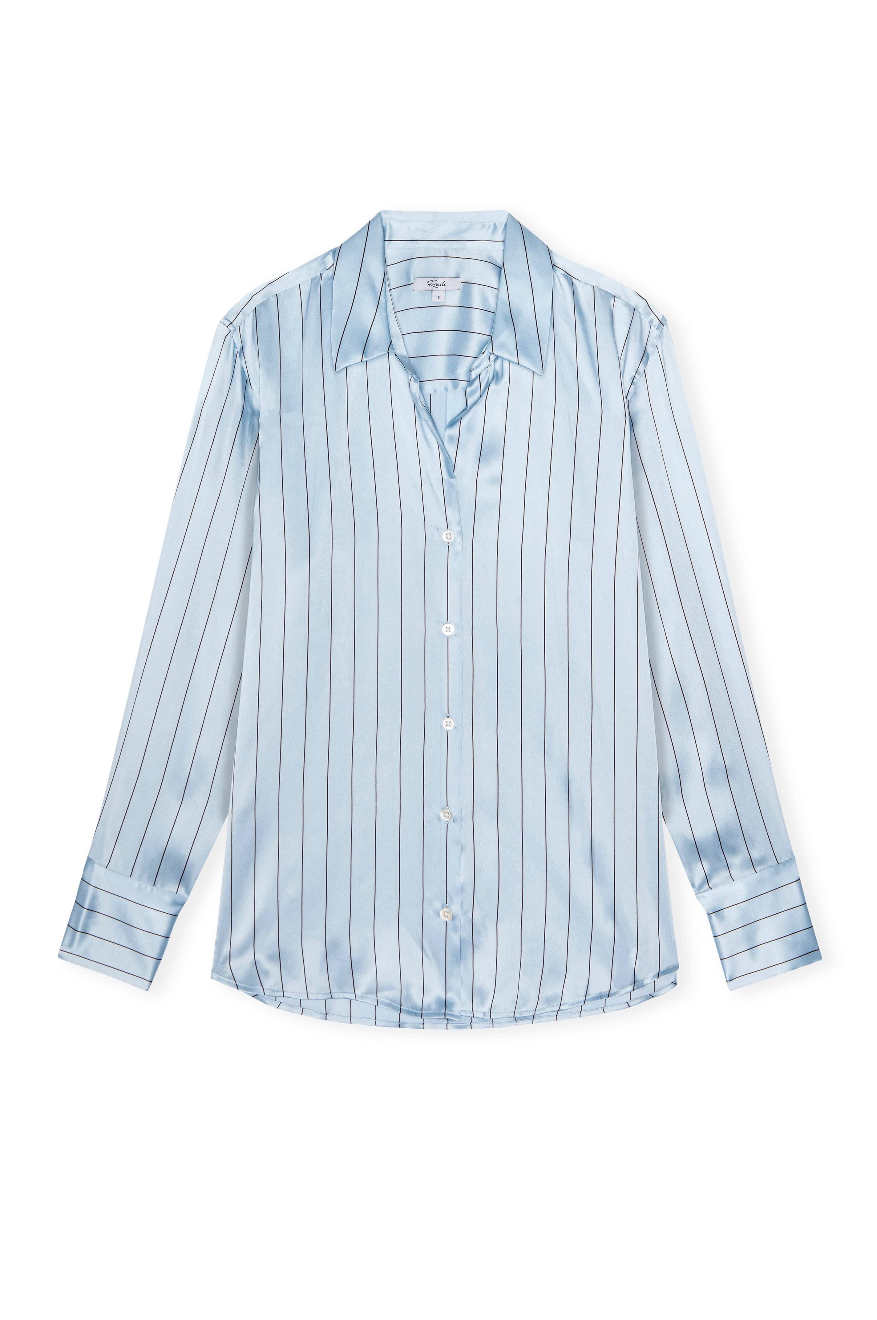 La chemise Dorian de Rails est conçue pour vous accompagner du travail au week-end et au-delà, avec sa luxueuse confection en charmeuse de soie et ses détails traditionnels. Rentrez-la, nouez-la ou superposez-la à votre t-shirt préféré : elle deviendra un élément élégant de votre garde-robe.