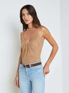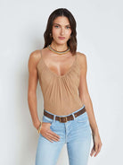 Ce body Gelina de L'AGENCE, subtilement sexy, est un indispensable de votre garde-robe en toute saison. Tandis que ses fronces apportent une touche de féminité à son décolleté plongeant, ses bretelles réglables permettent un ajustement parfait. Sublime porté seul, il peut être superposé sous un tailleur pour un look de bureau impeccable.