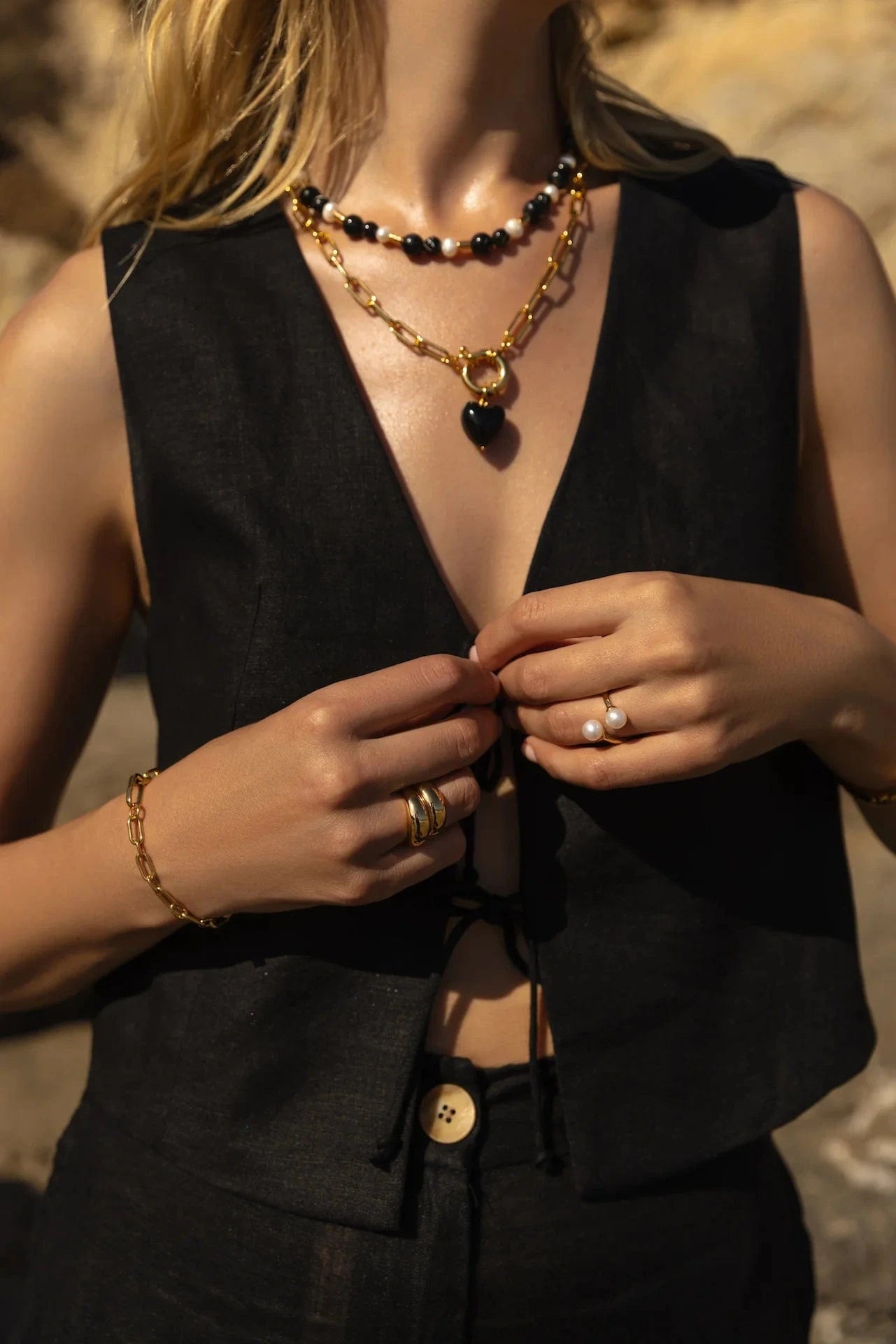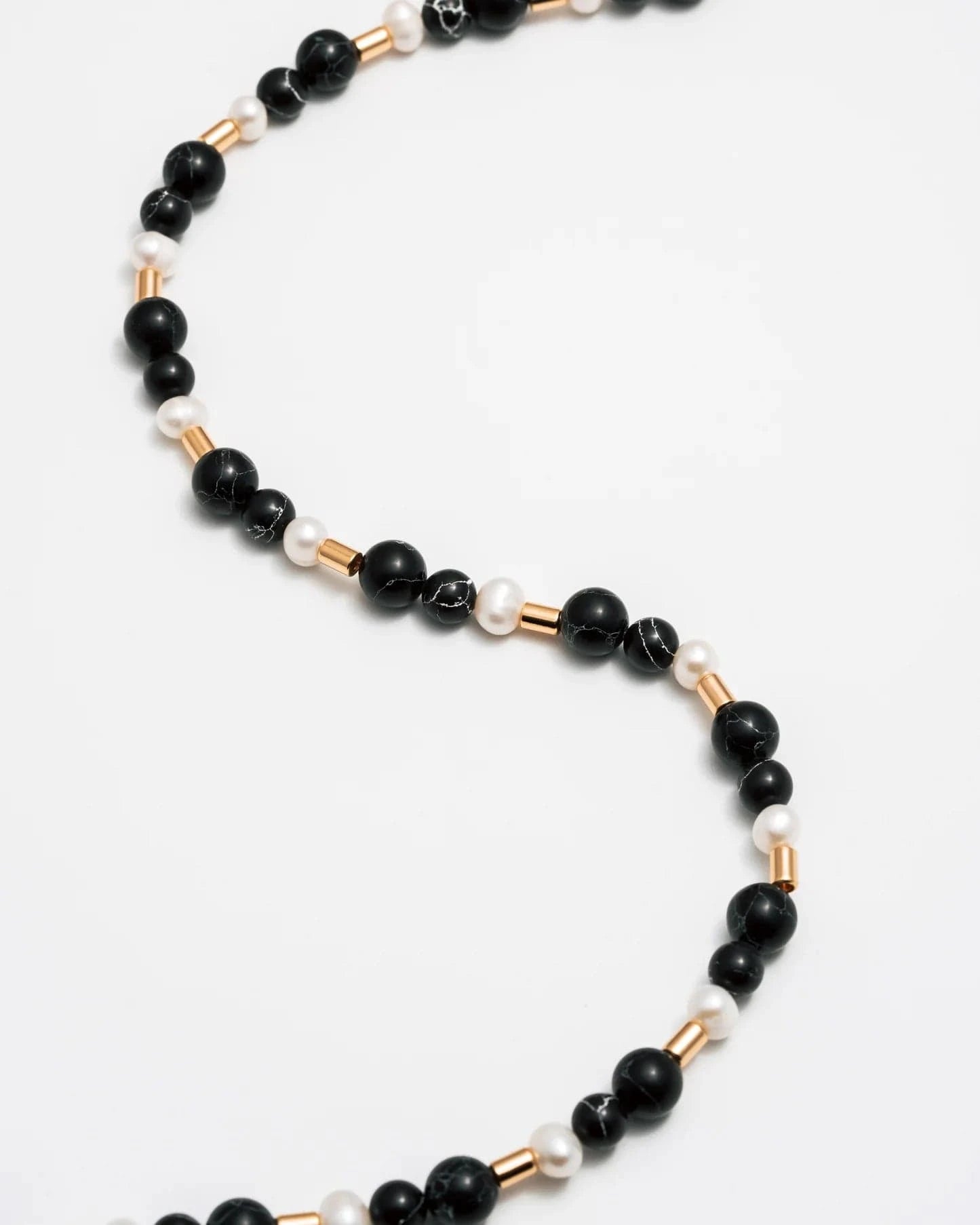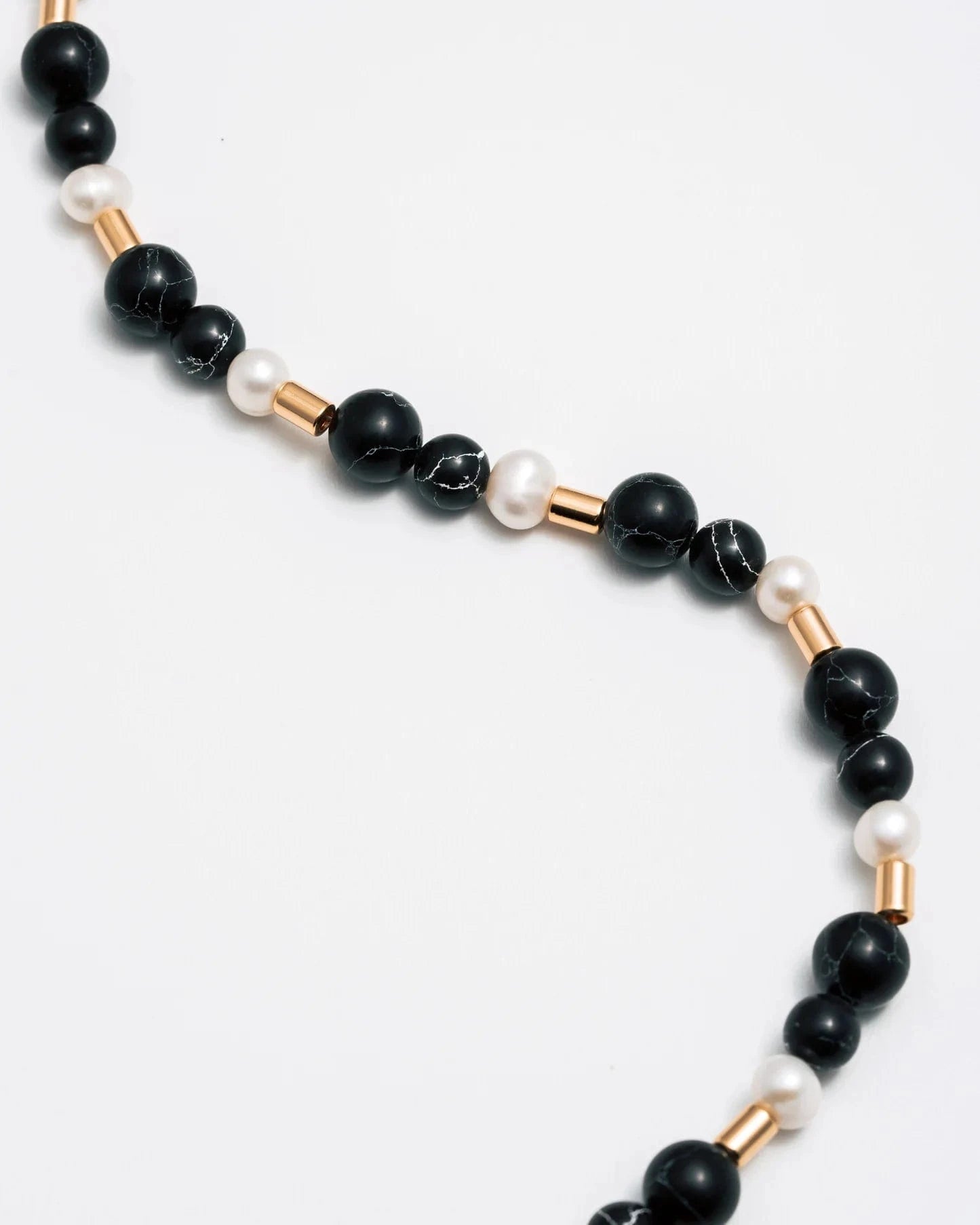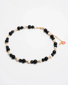• Composition : Perles de pierre noire, de perles d'eau douce et de laiton plaqué or 3 microns.