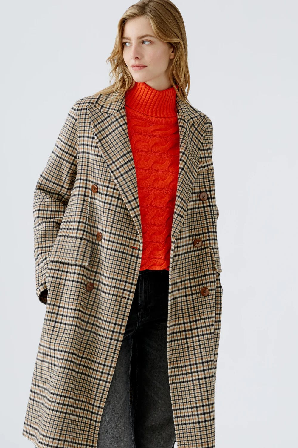 Plongez dans la tendance Quiet Luxury avec ce matériau de haute qualité transformé en manteau avec une double finition classique. Ce manteau en laine de Oui Fashion travaillé comme un tissu double possède des manches avec fente qui sont rabattables pour raccourcir leur longueur. Portez-le autant avec des couleurs punchées qu'avec du neutre pour une tenue ton sur ton.