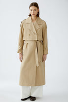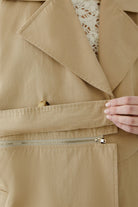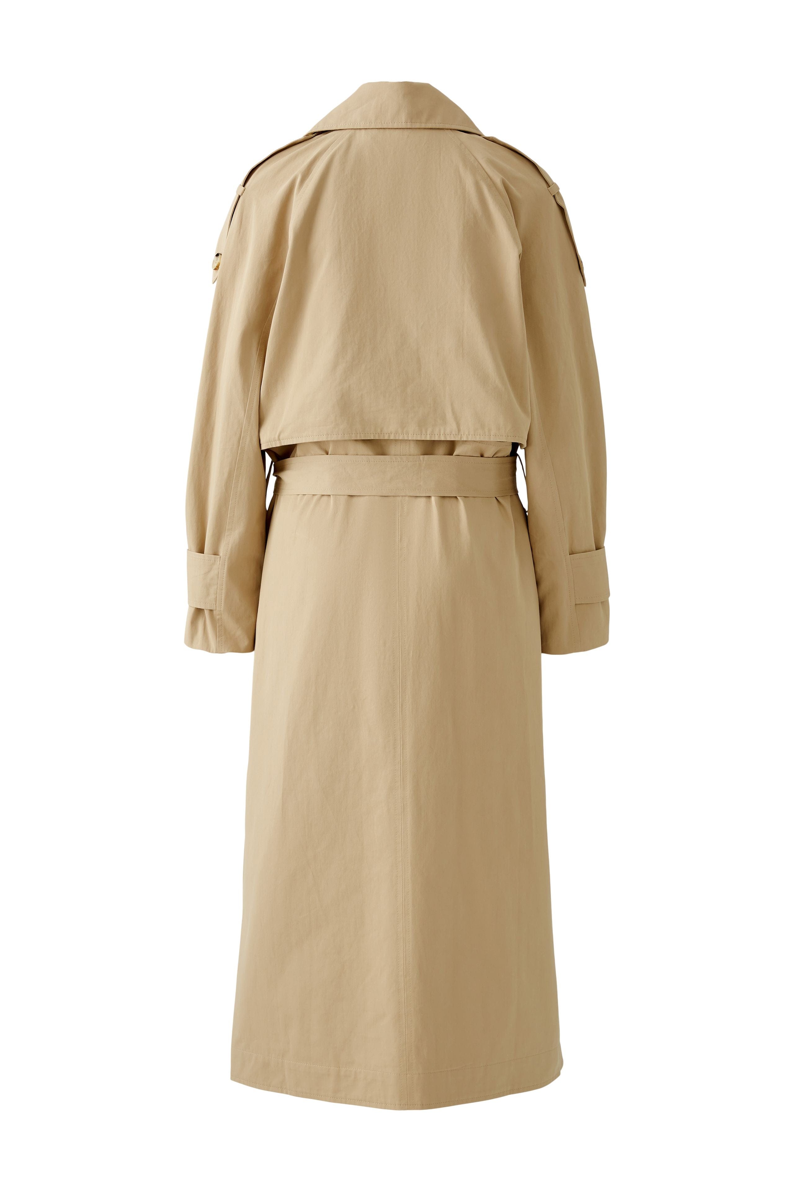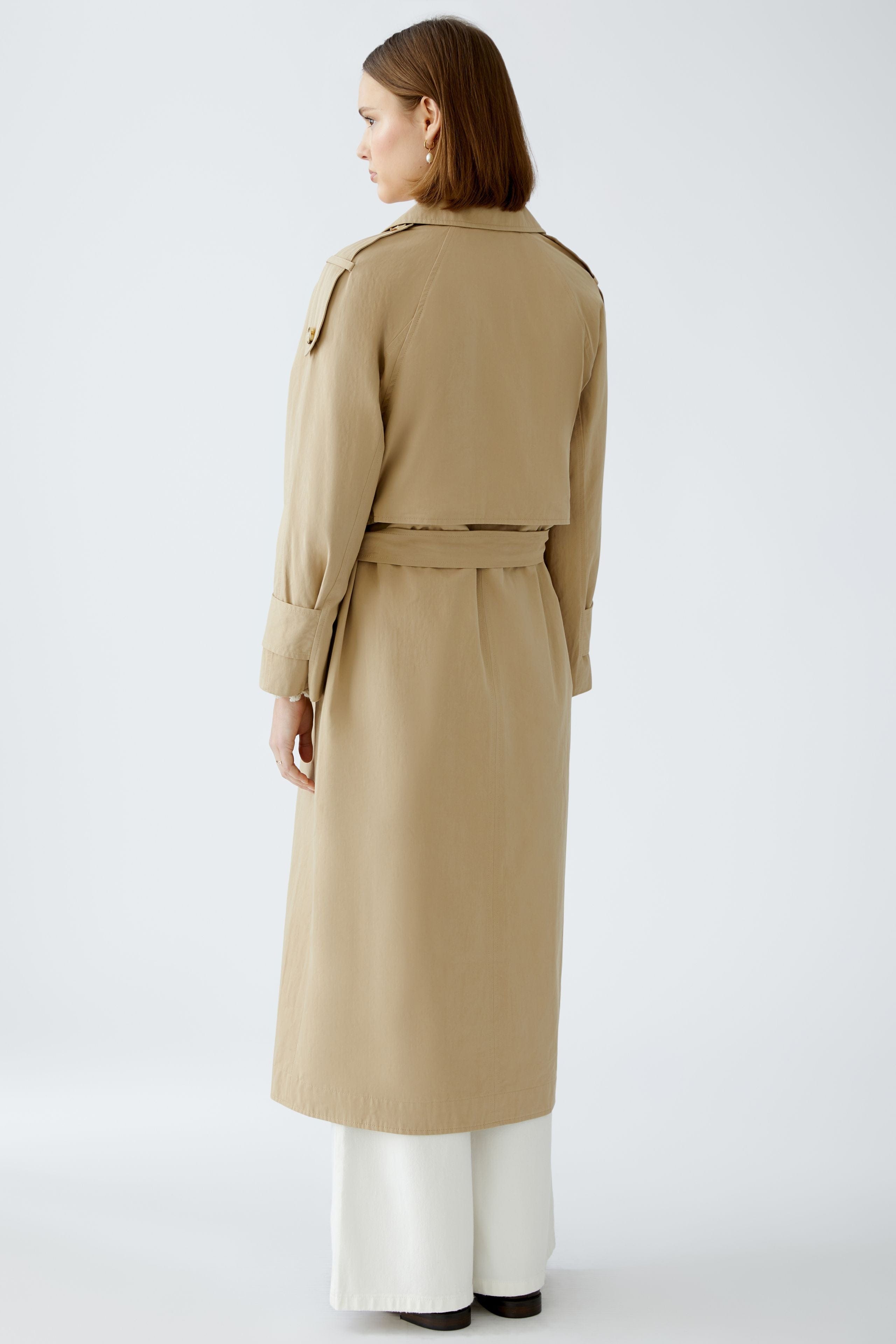 - Détails classiques du trench-coat, tels que ceinture, empiècement au dos, barre sur l'épaule et le bras.