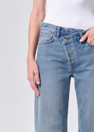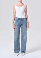 Le jean Arc Criss Cross en coloris Conclusion de AGOLDE réinvente une silhouette emblématique avec une touche de modernité. Confectionné en coton rigide régénéré et recyclé, ce denim indigo moyen présente une ceinture croisée, une coupe ample au niveau des hanches et une jambe galbée pour une silhouette subtilement sculptée. Un entrejambe de 32" allonge la silhouette, alliant structure et confort.