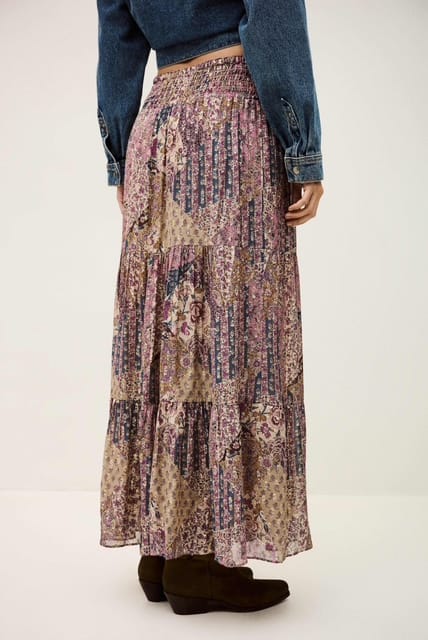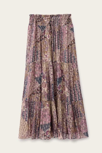 Cette jupe longue Pisty à étages de BA&SH est bohème chic. Tandis que ses détails de fil métallisé ajoutent une touche de brillance, sa coupe ample et fluide la rend parfaite pour les jours chauds. Portez-la autant avec un cardigan qu'une camisole.