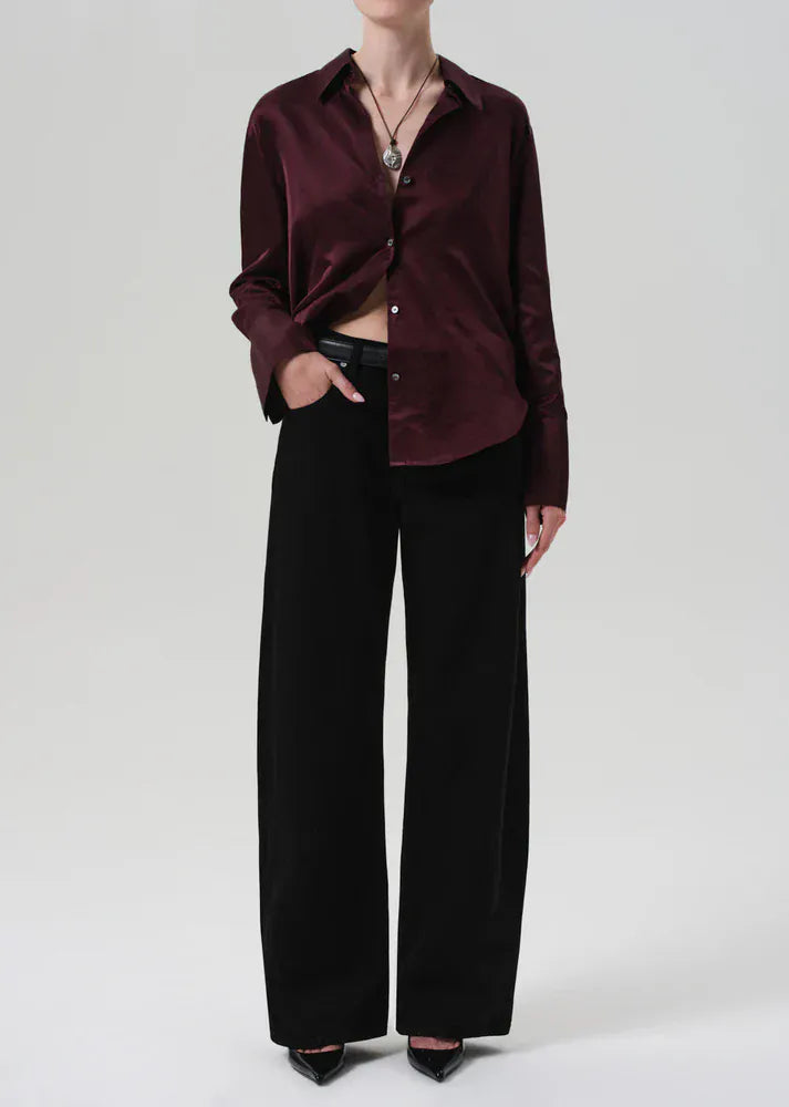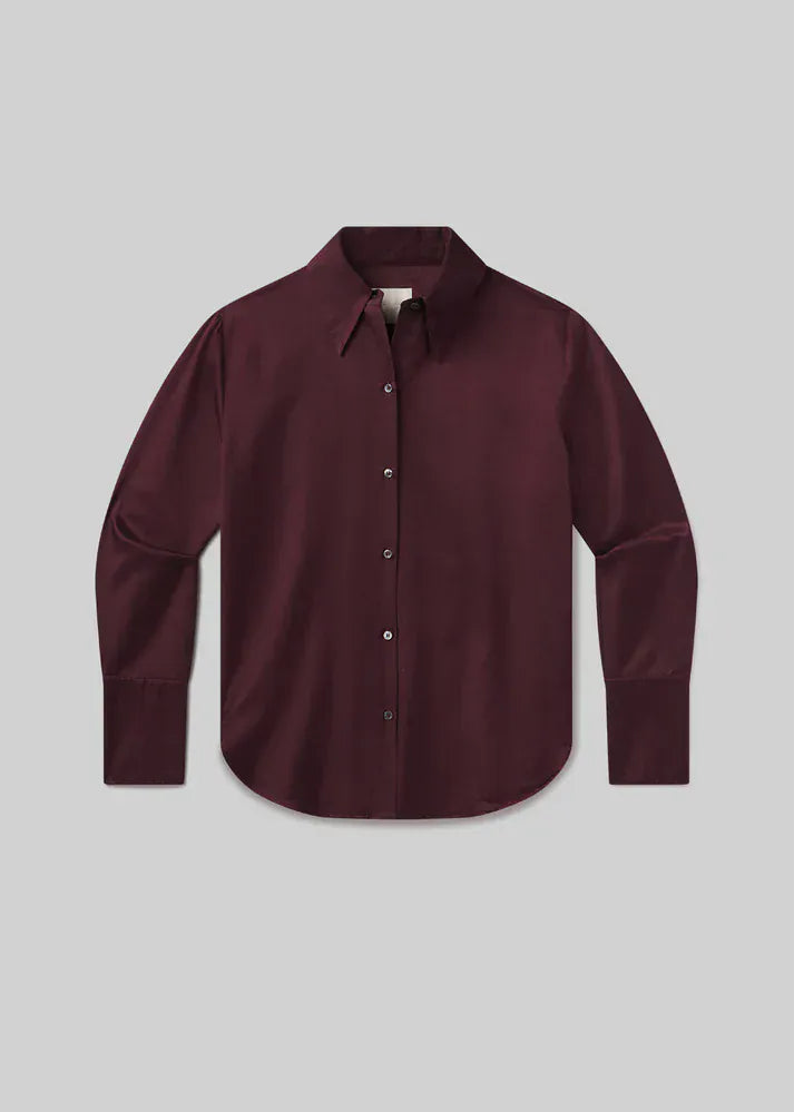 Raffinée et féminine, la chemise Camilia de CITIZENS OF HUMANITY est confectionnée dans un mélange coton-soie ultra-doux au drapé fluide. Sa coupe à manches longues présente une fermeture boutonnée épurée et une structure subtile, tandis que sa riche teinte bordeaux, aux nuances rouge foncé et violettes, lui confère une élégance mystérieuse. Parfaite rentrée dans un jean ou portée ample sur un pantalon tailleur.