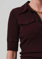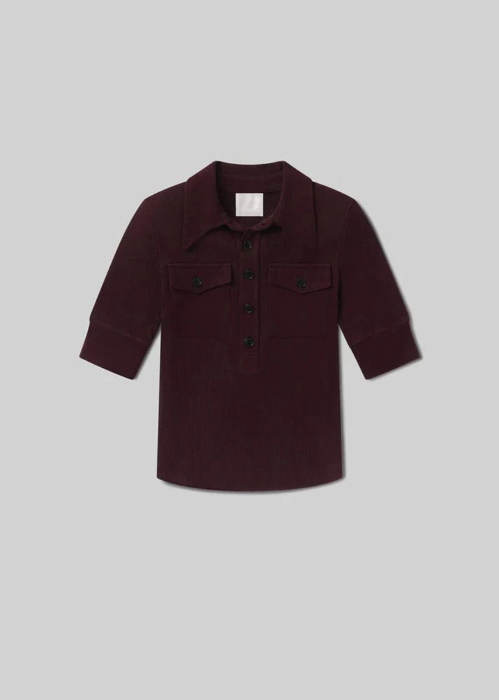 Le polo Amina de CITIZENS OF HUMANITY est un essentiel raffiné, confectionné dans un tissu côtelé ultra-doux et offrant un bon maintien. Doté de manches aux coudes et de poches plaquées sur le devant, il offre une silhouette épurée et agréable au toucher. Sa teinte acajou profonde, aux nuances de violet foncé et de marron, lui confère une touche moderne et décontractée. Idéal avec un jean ajusté ou du cuir.