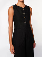 Le haut Amalie est un haut boutonné à col montant. Il est orné de boutons marron, de surpiqûres ton sur ton et d'une finition soignée. Le lin est un véritable lin noir. De haute qualité et au drapé impeccable, les pièces en lin luxueux de DL1961 sont fabriquées à partir de fibres de lin 100 % naturelles et conçues pour vous offrir un confort optimal par temps chaud. Associez le haut Amalie à son short plissé Hepburn assorti.