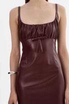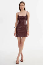 La robe en similicuir Malika de LAMARQUE allie douceur et structure avec une aisance naturelle. Confectionnée en similicuir souple, avec une poitrine froncée et un nœud délicat, elle épouse les formes pour une coupe flatteuse et sculptante. Ses bretelles et sa longueur mini en font la pièce idéale pour les soirées où la féminité est au rendez-vous.