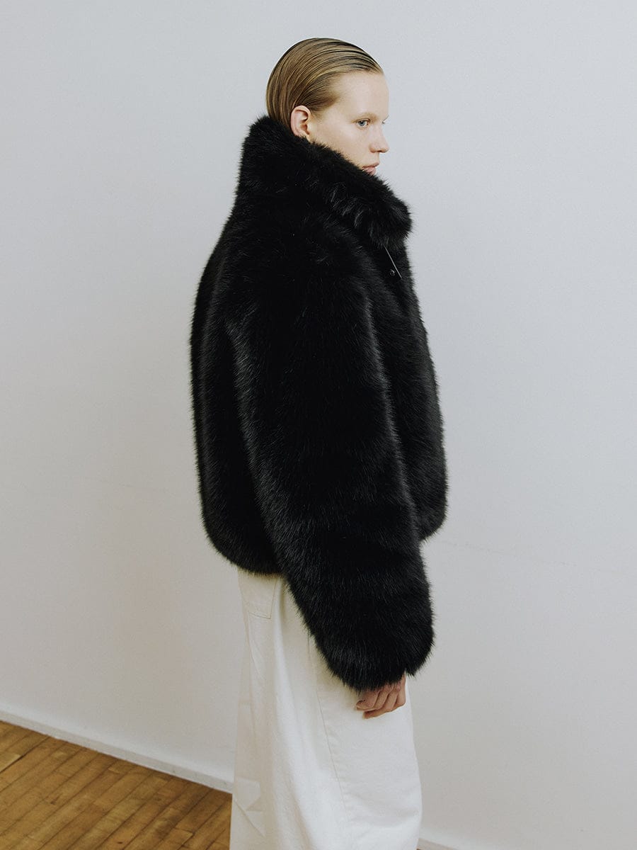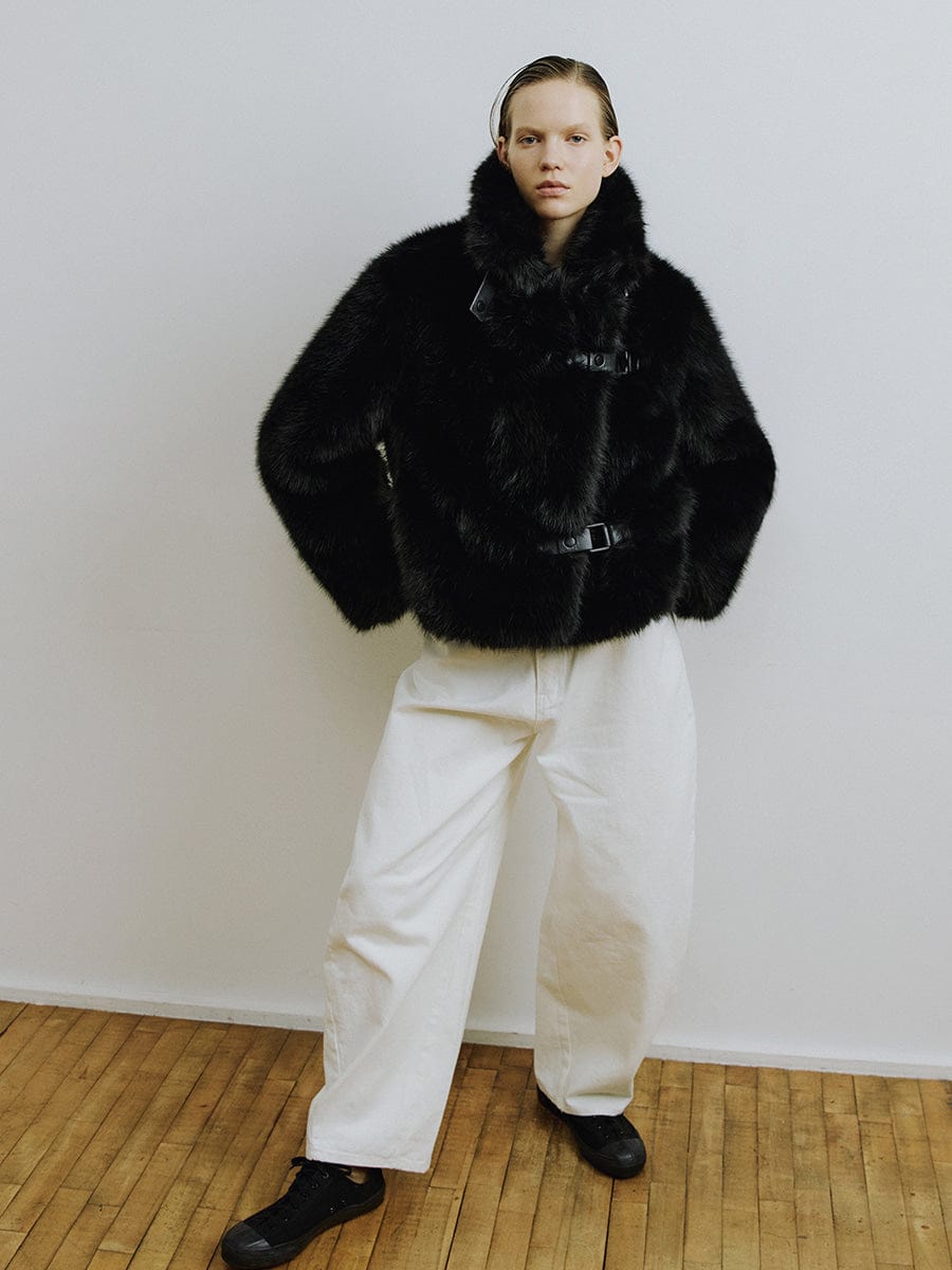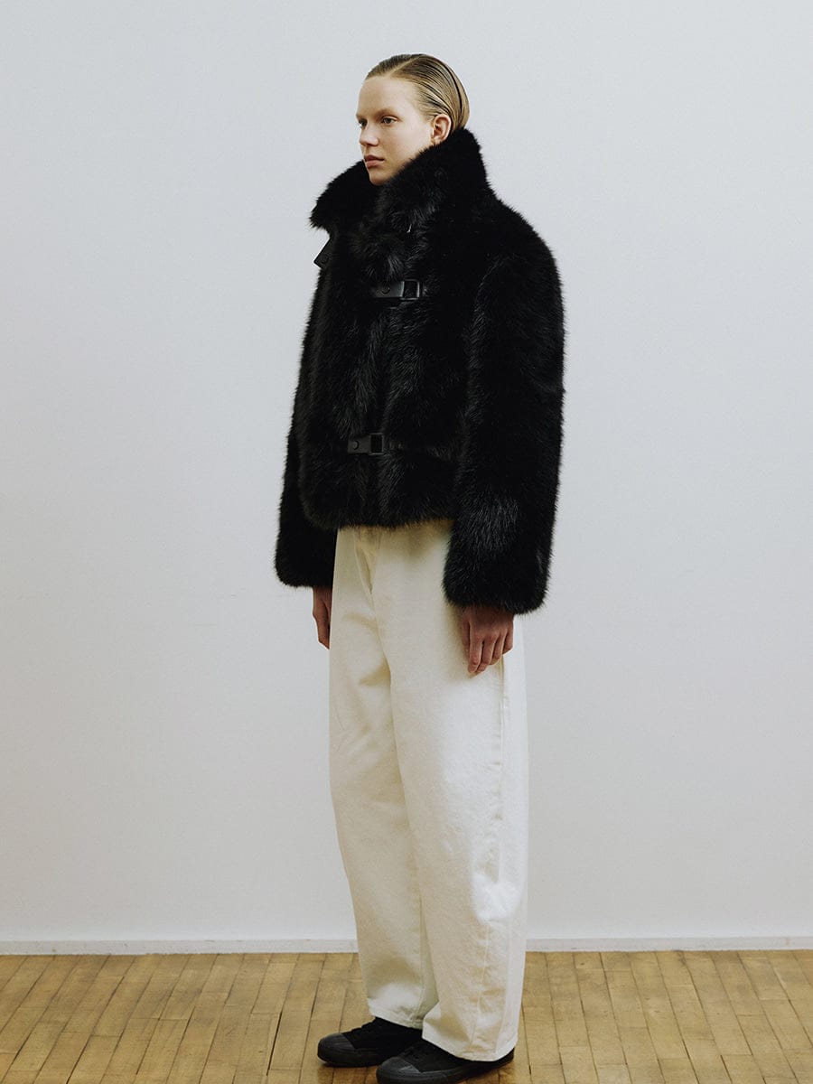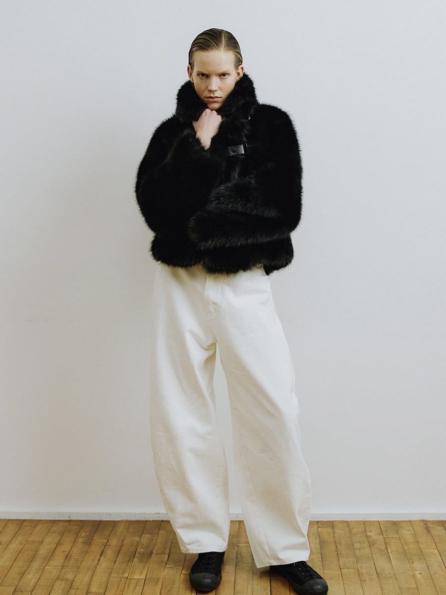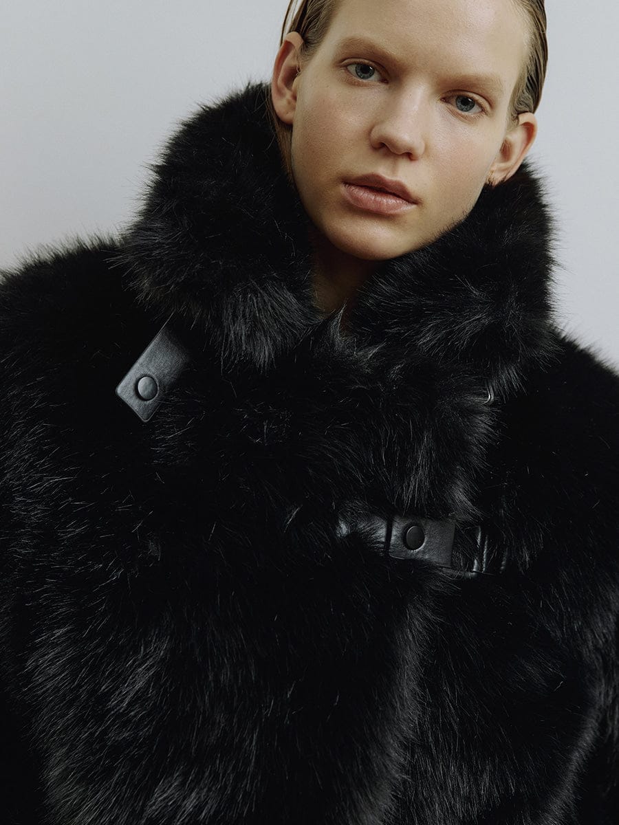 La veste en fausse fourrure ROY de MOLLIOLLI est ornée d'un détail brandebourg unique qui complète un style à la fois chaleureux et sophistiqué pour la saison automne-hiver. La coupe courte crée une silhouette dynamique, tandis que la fausse fourrure douce et volumineuse procure à cette pièce polyvalente une allure luxueuse et raffinée. Idéale au quotidien comme pour les grandes occasions, ce manteau est une pièce forte parfaite pour la saison.