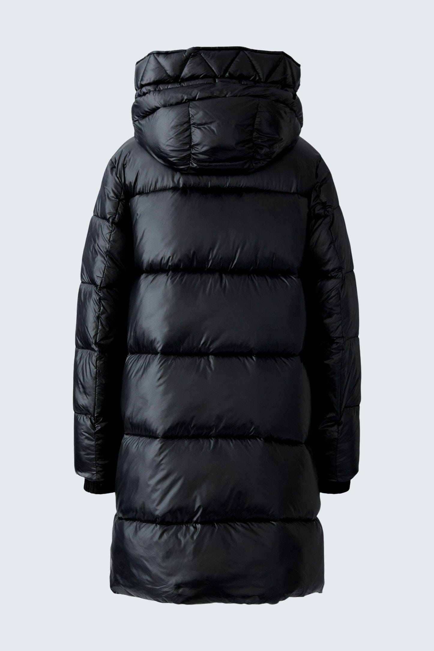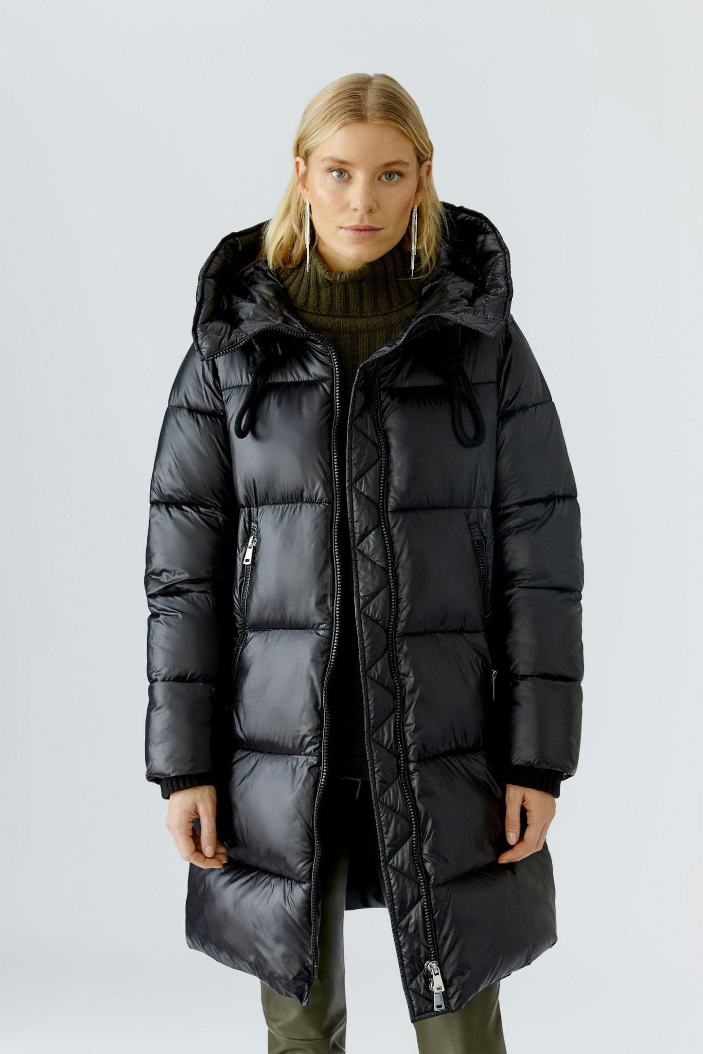 Ce manteau d'extérieur en nylon subtilement brillant de OUI FASHION est léger et compact, puis doux et lisse au toucher. Déperlant et coupe-vent, il possède un rembourrage chaud sans produits et matières animales, ainsi que des poignets tricotés en laine renforcée d'élasthanne. Il sera un manteau par temps froid aussi chaud qu'élégant.