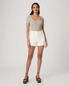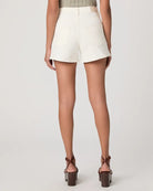 Le short Dani de PAIGE présente une taille ultra haute et une coupe légèrement trapèze. Doté d'une empiècement devant et de poches passepoilées, ce modèle est confectionné en denim écru stretch confortable, offrant une couvrance optimale et une élasticité idéale. Il deviendra un de vos favoris de l'été.