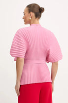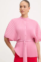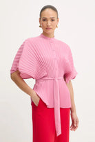 Cette chemise en crêpe de Chine de TWINSET est confectionnée en 100 % polyester recyclé post-consommation certifié. Blouse ample à plis, elle présente un col rond, une fermeture boutonnée sur le devant, des manches trois-quarts et une ceinture amovible. Romantique et féminine, elle ajoutera du punch à vos tenues.