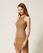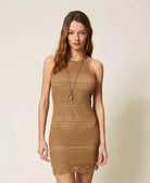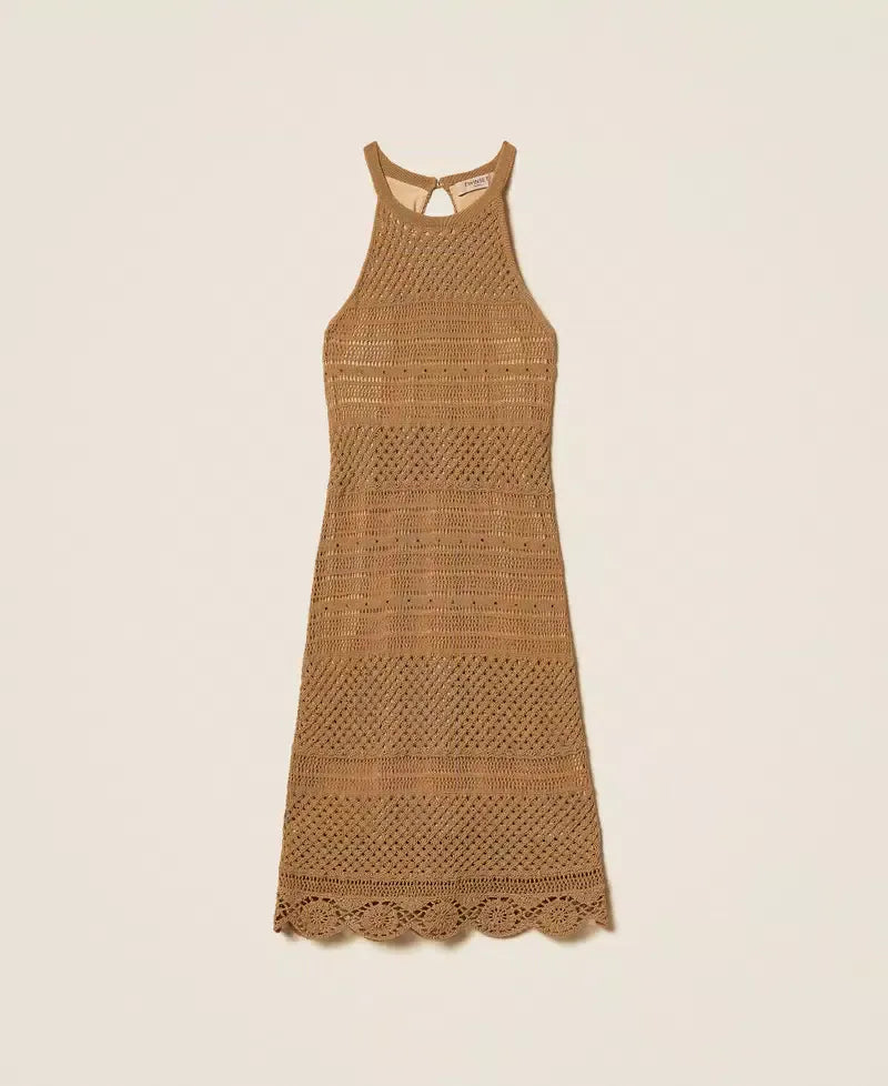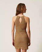 Cette robe courte en maille ajourée de TWINSET est confectionnée dans un mélange de lin et coton. Ornée de strass, elle présente un col halter, un ourlet festonné au crochet à motif floral et une coupe ajustée. Confortable et féminine, elle sera parfaite pour les voyages ou vos sorties.