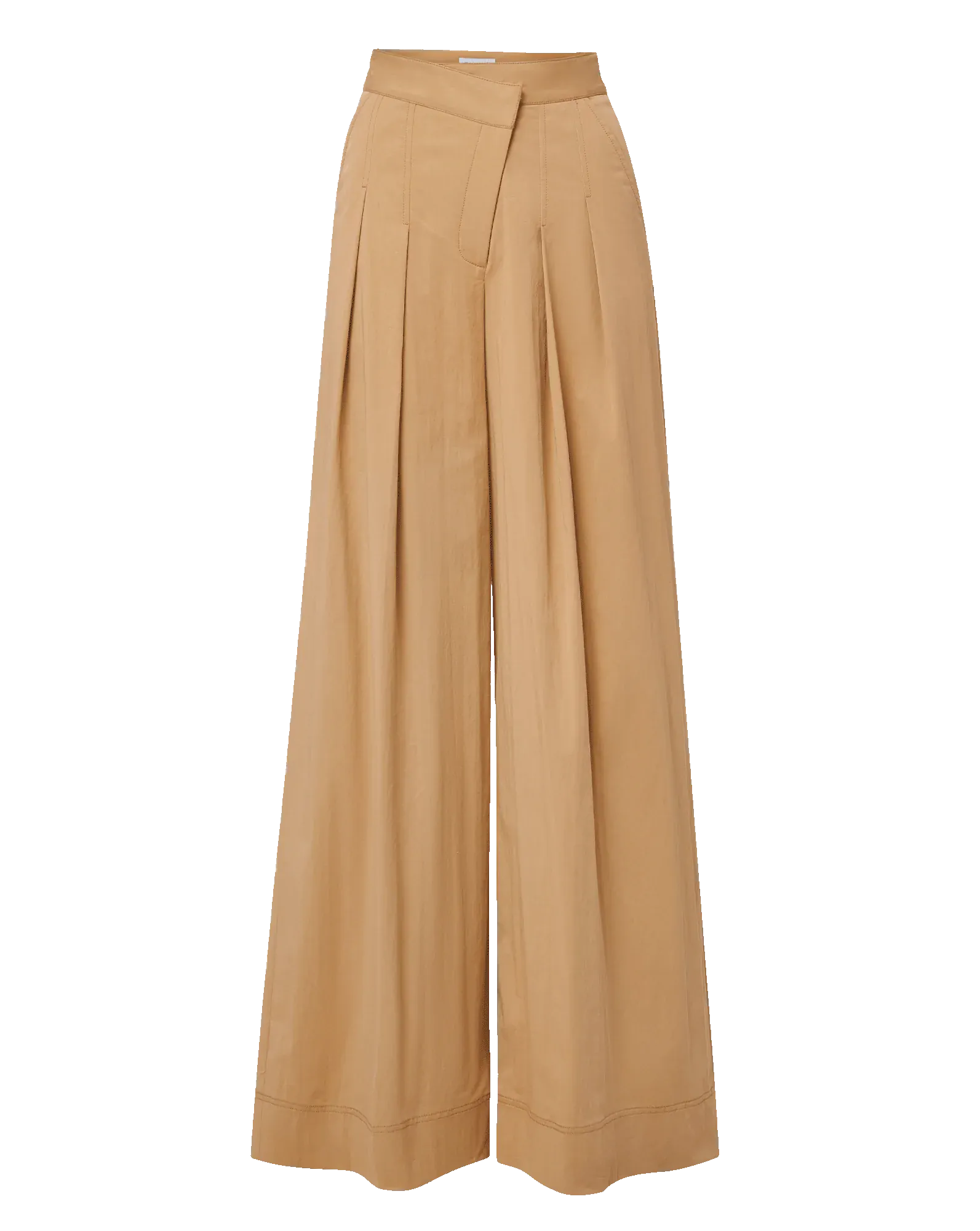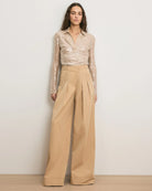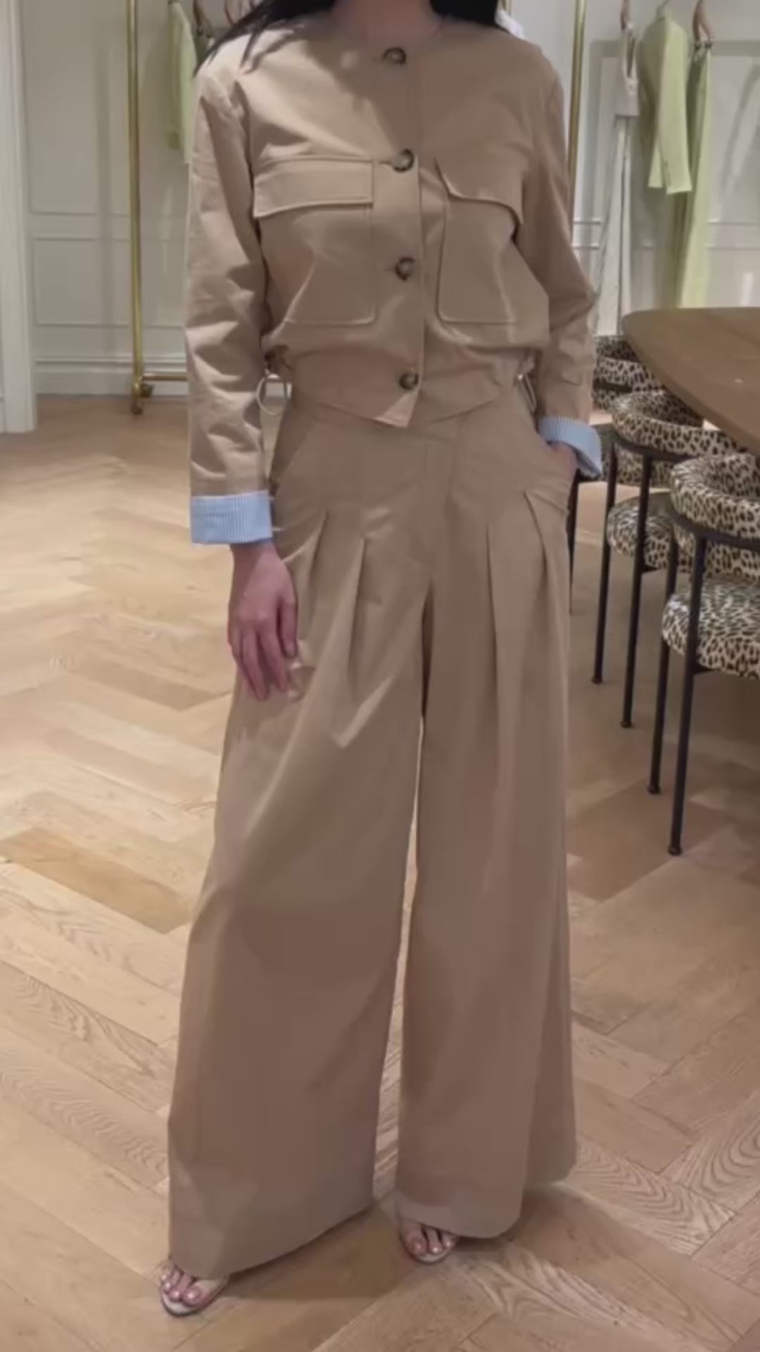 Confectionné avec soin dans un coton extensible, le pantalon Heron de VERONICA BEARD présente une matière mi-lourde au tombé net qui revisite le pantalon tailleur avec modernité. Dans un coloris kaki (beige), il possède une taille haute avec ceinture croisée et une coupe extra large qui allonge la silhouette avec caractère. Ses plis doubles marqués sur le devant assurent une grande liberté de mouvement et créent un volume dramatique. Doté de poches latérales et de poches passepoilées à l’arrière, il se marie parfaitement avec une chemise classique, un t-shirt minimaliste ou encore un veston pour un look plus structuré.