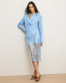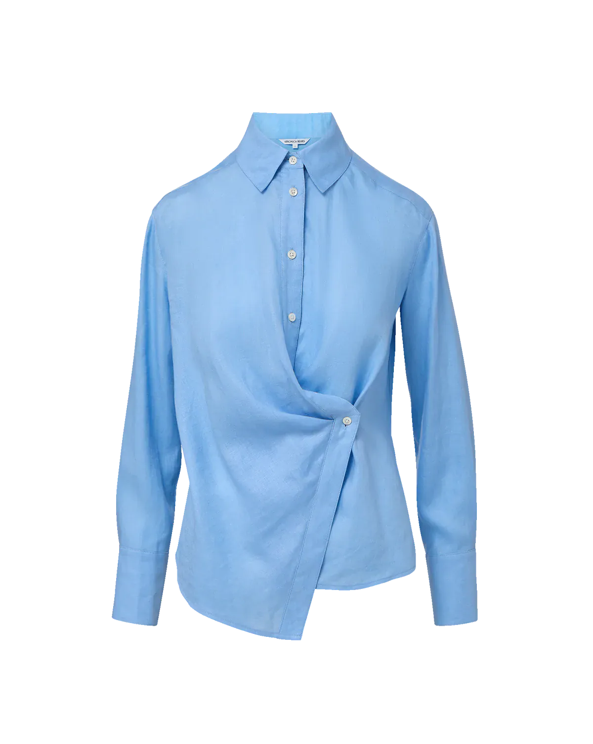 Confectionnée avec soin dans un lin léger et respirant, la chemise Perezzi de VERONICA BEARD revisite la chemise classique avec une approche architecturale. Dans un bleu vif Blue Jay, elle présente une matière fluide au tombé naturel qui apporte fraîcheur et sophistication. Sa coupe décontractée est définie par une patte de boutonnage asymétrique effet portefeuille, créant une silhouette unique et contemporaine. Ses épaules légèrement tombantes et ses manches longues ajoutent une allure effortless, tandis que son col pointu structure l’ensemble. Elle se marie parfaitement avec un pantalon tailleur, un denim ou une jupe pour un look polyvalent et raffiné.