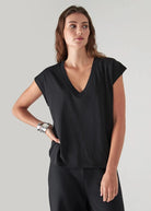 Le t-shirt Dolman à col en V de Patrick Assaraf est conçu dans leur emblématique tissu extensible pima. Sa coupe décontractée est ornée d'une bordure au col et d'épaules marquées. Parfait pour un t-shirt de tous les jours, il peut être glissé dans votre jean préféré saison après saison.